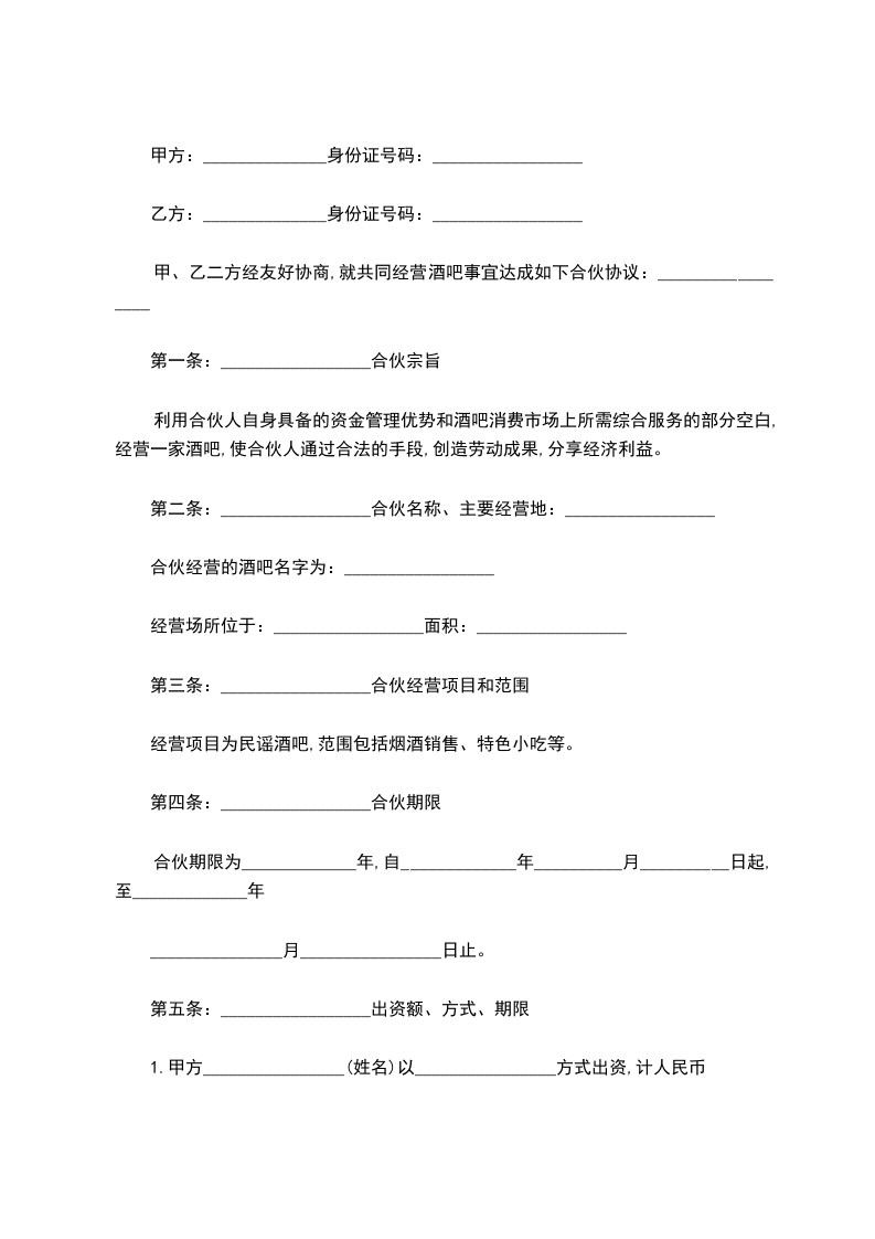 甲、乙二方经友好协商,就共同经营酒吧事宜达成如下合伙协议:_________________