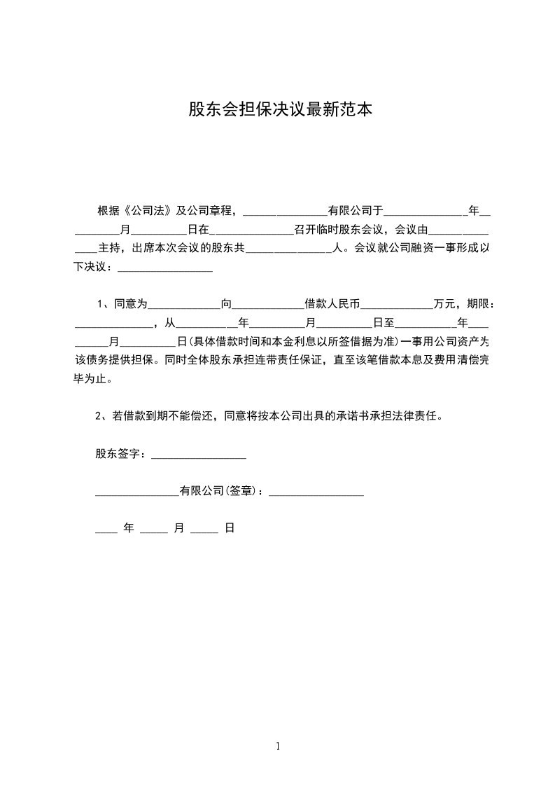 1、同意为_____________向_____________借款人民币_____________万元,期限:______________,从___________年__________月__________日至___________年__________月__________日(具体借款时间和本金利息以所签借据为准)一事用公司资产为该债务提供担保。同时全体股东承担连带责任保证,直至该笔借款本息及费用清偿完毕为止。