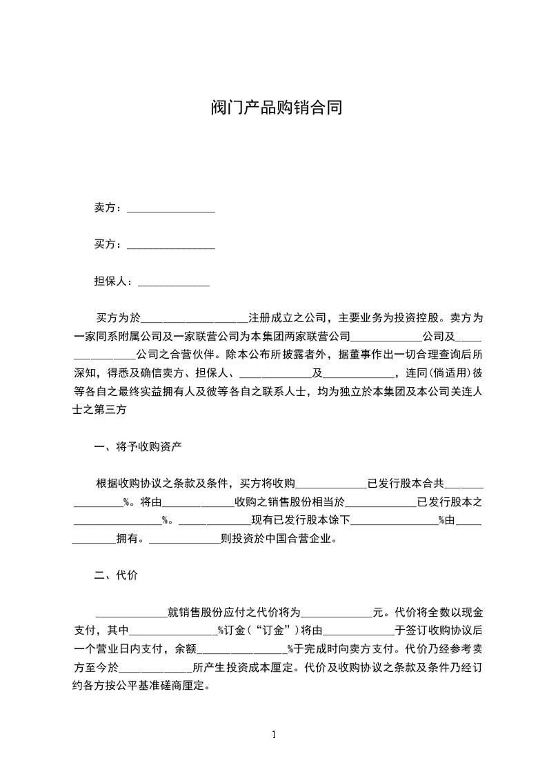 “代价”指销售股份之代价_____________元,根据收购协议须由_____________支付。