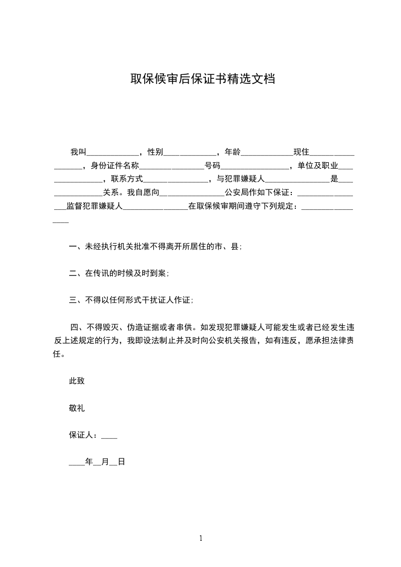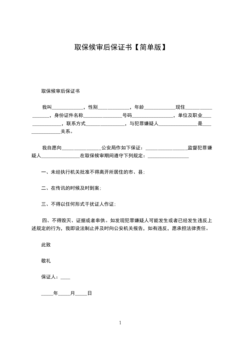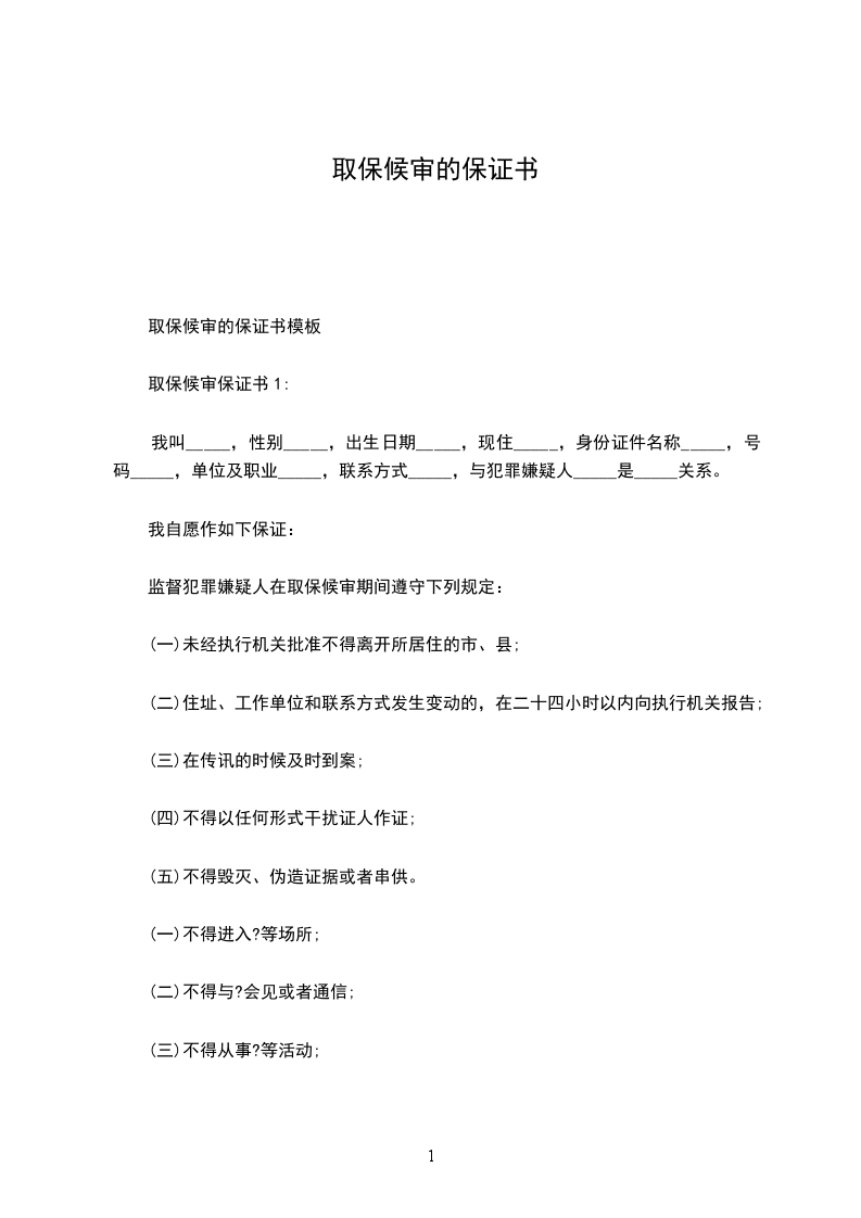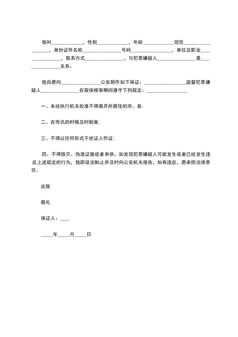 我自愿向________________公安局作如下保证:_________________监督犯罪嫌疑人________________在取保候审期间遵守下列规定:_________________