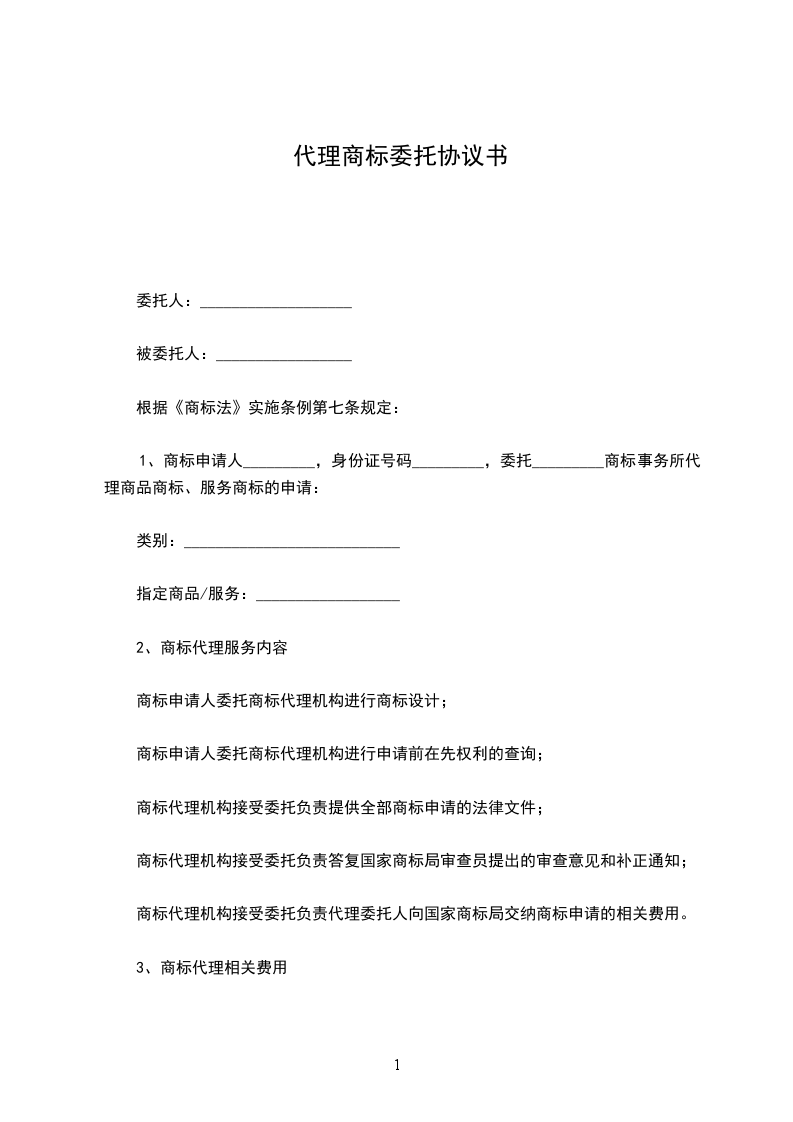 甲方就一案委托乙方代理商标事务,现经双方协议,订立下列条款,共同遵守:_________________