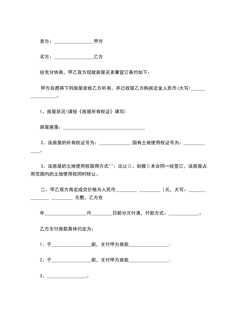 甲方自愿将下列房屋卖给乙方所有,并已收取乙方购房定金人民币(大写)_________________。