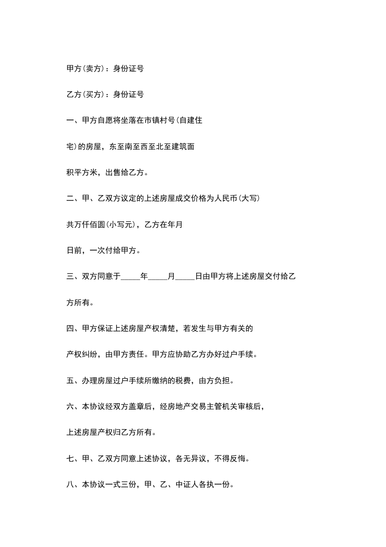 一、甲方自愿将坐落在市镇村号(自建住
