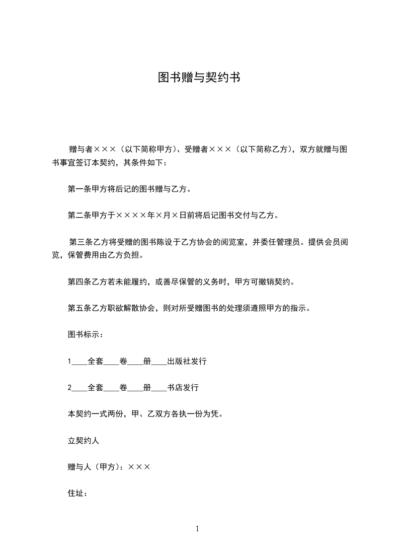 赠与者×××(以下简称甲方)、受赠者×××(以下简称乙方),双方就赠与图书事宜签订本契约,其条件如下:
