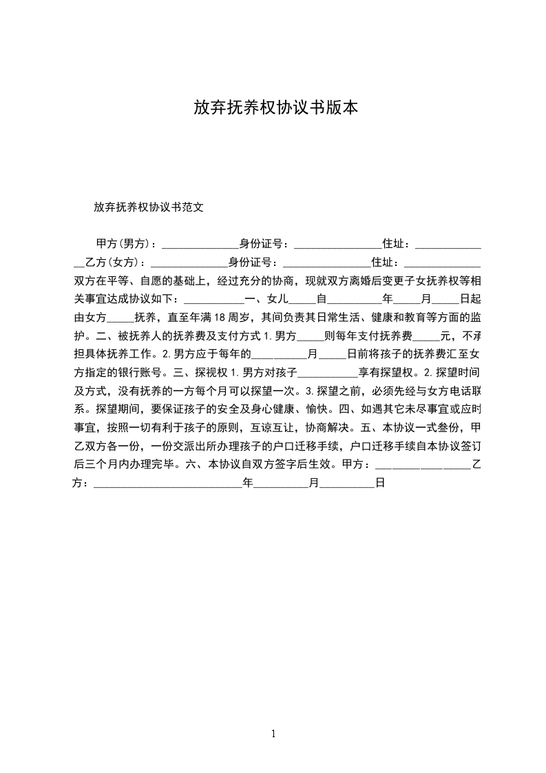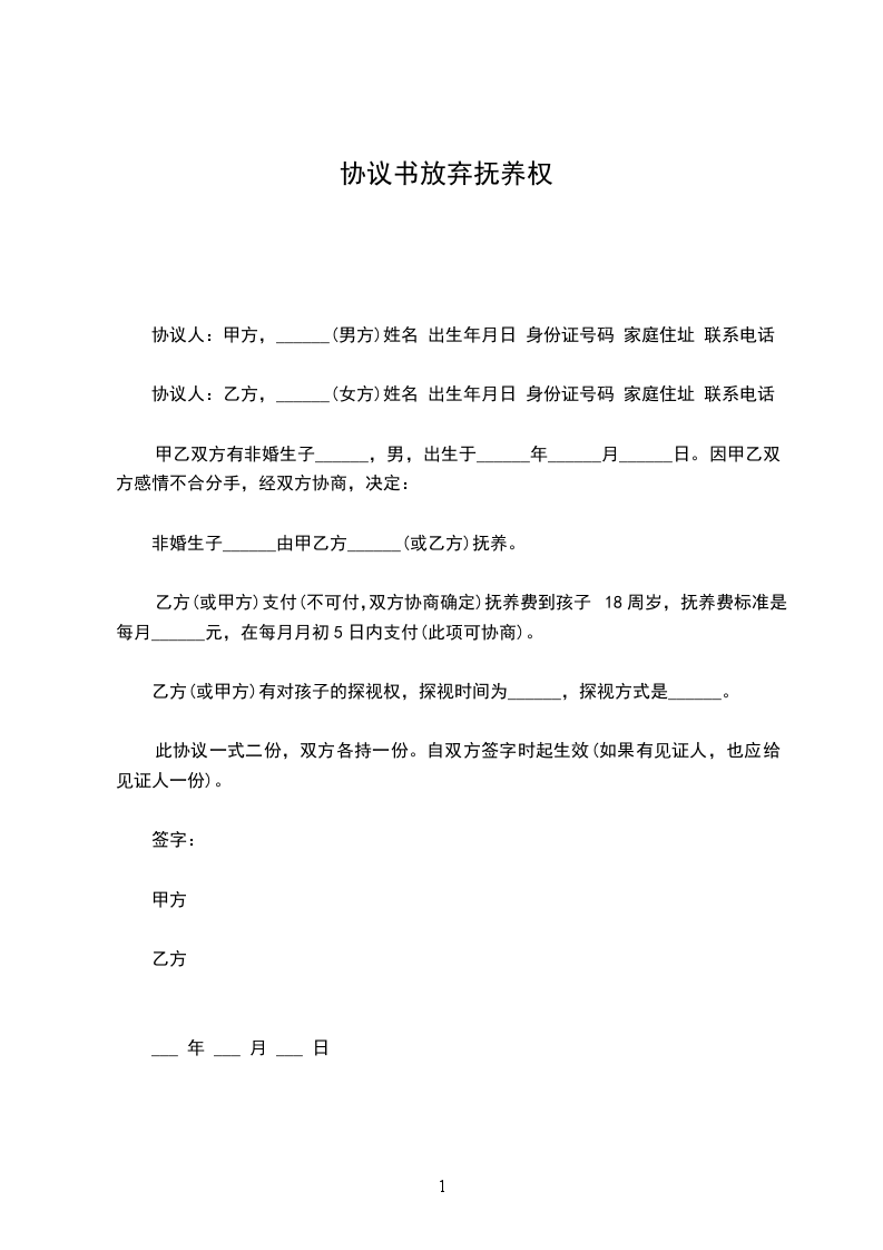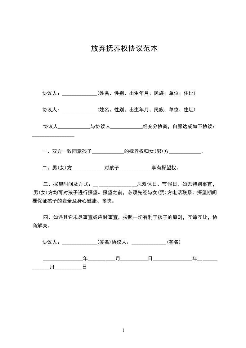 协议人:______________(姓名、性别、出生年月、民族、单位、住址)
