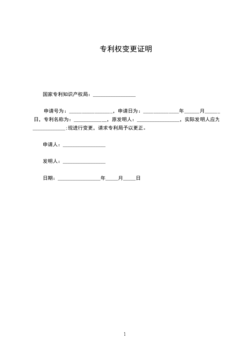 申请号为:_________________,申请日为:______________年______月______日,专利名称为:_____________,原发明人:_________________,实际发明人应为_____________;现进行变更,请求专利局予以更正。