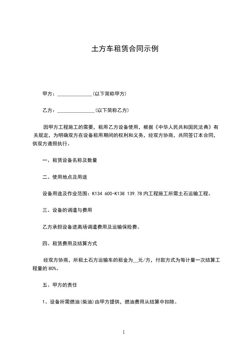 乙方提供自卸式工程运输车辆:9辆,载重量:30吨。运距:11公里