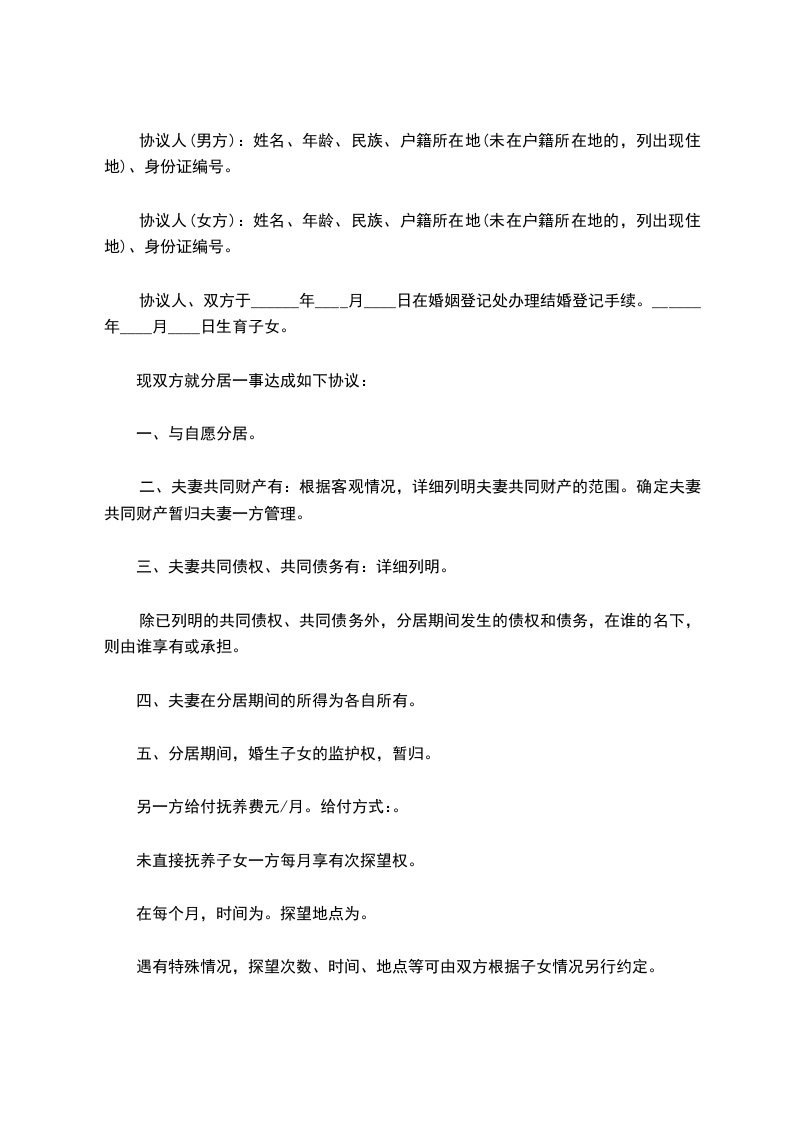 协议人、双方于______年____月____日在婚姻登记处办理结婚登记手续。______年____月____日生育子女。