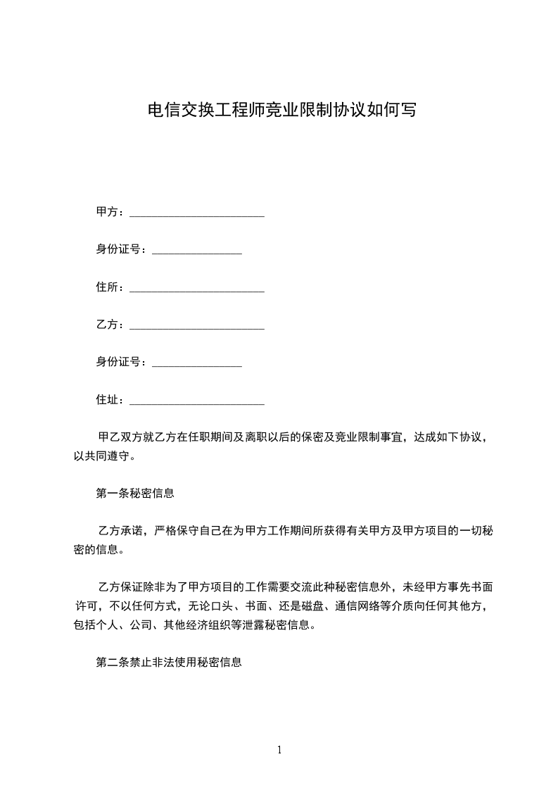 1、未经甲方同意,在职期间不得自营或者为他人经营(包括投资于)与甲方同类的营业。