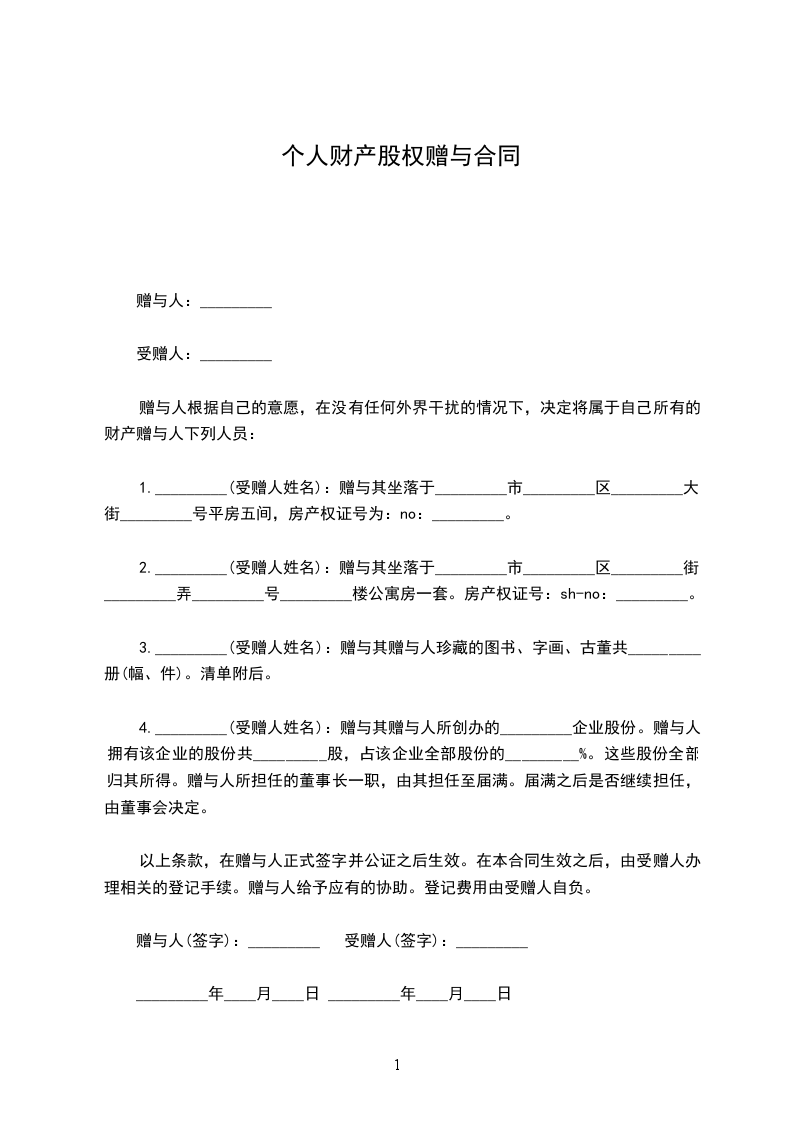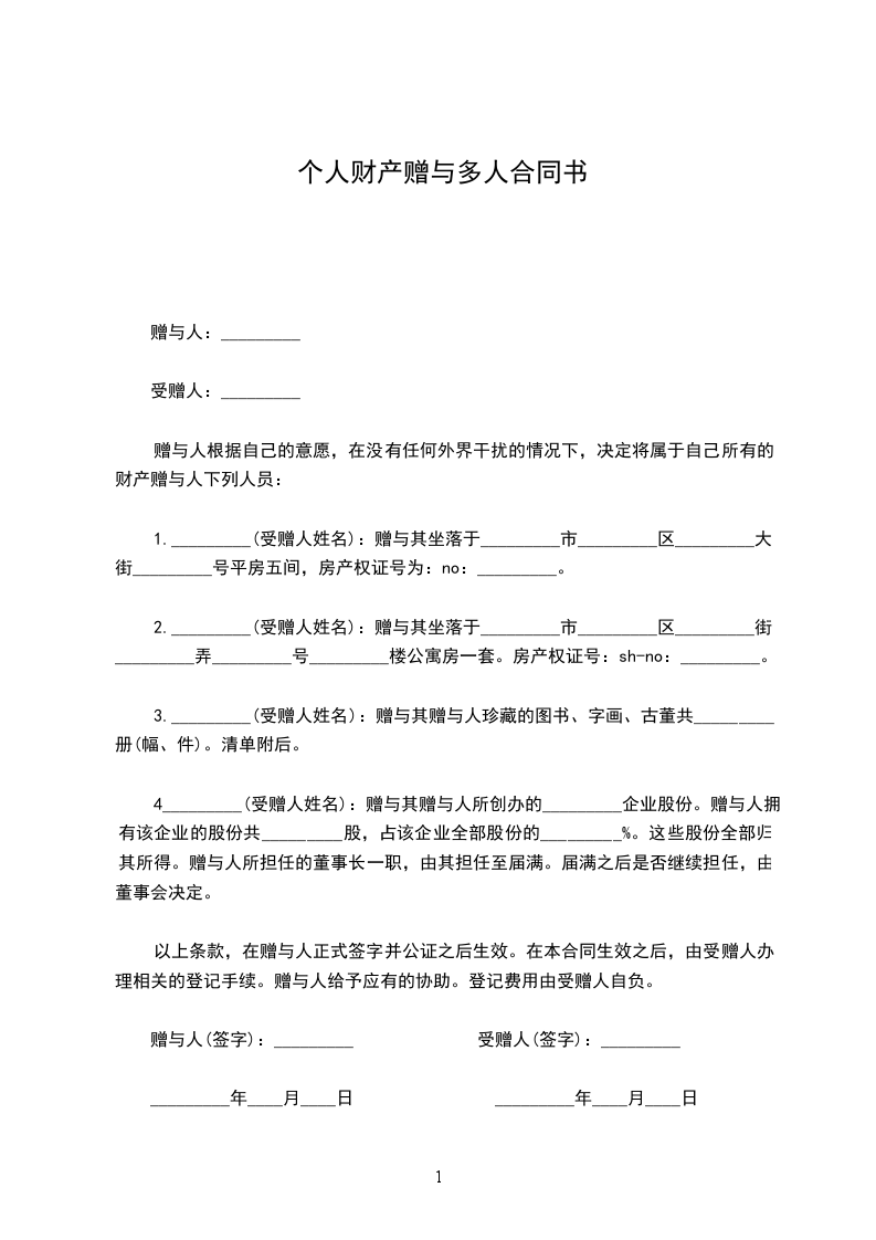 赠与人:______________