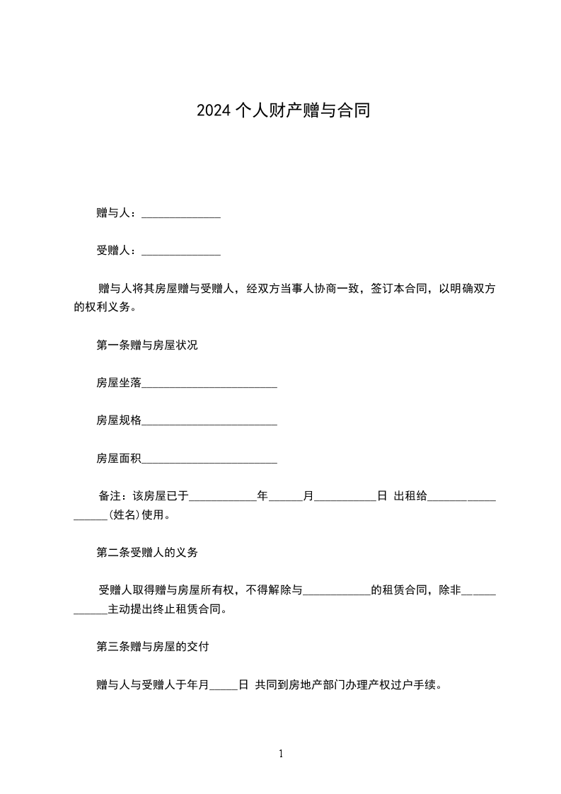 第一条赠与房屋状况