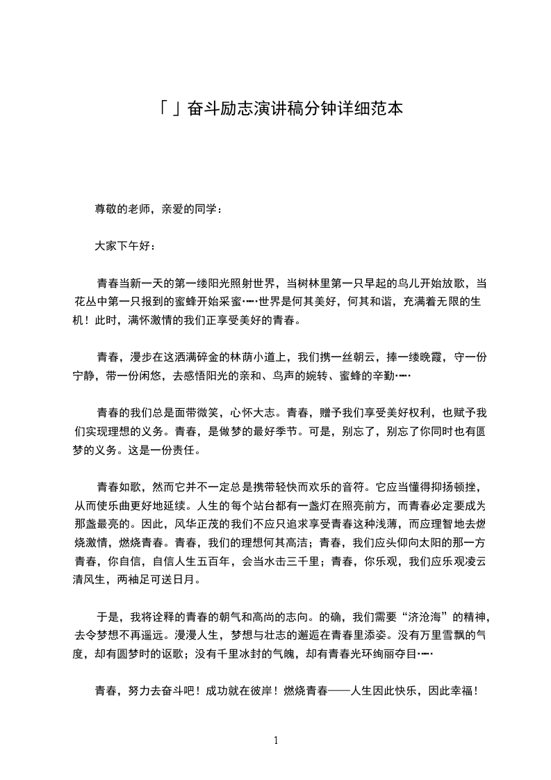 青春奋斗励志演讲稿篇三
