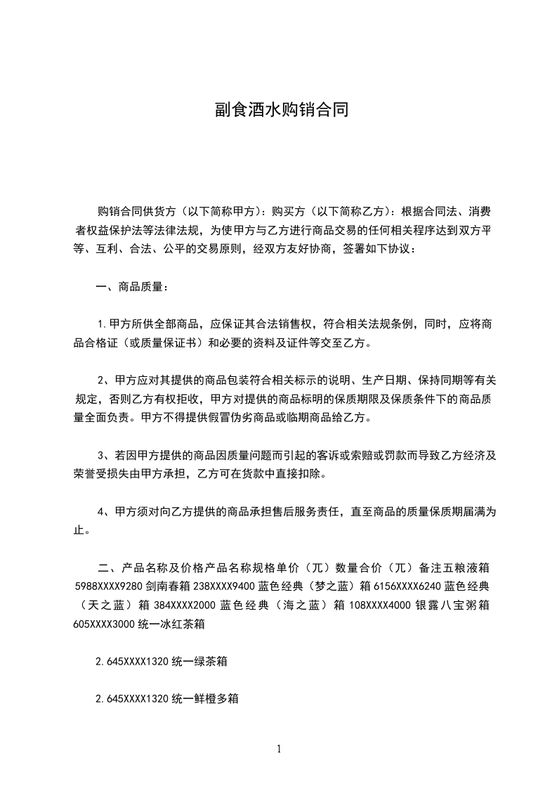 系列啤酒指定 (市、区)一家总代理,未经供方许可,需方不得自行转让买卖合同,否则则视合同无效。需方在合同约定的县、市、地区内销售,不得冲击其它县、市市场。在所销售区域内销售价格必须统一,不得降价销售,否则供方有权单方终止合同或采取惩罚措施,扣留全年返利和保证金。