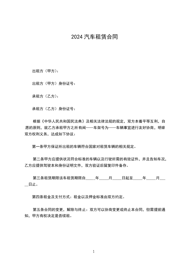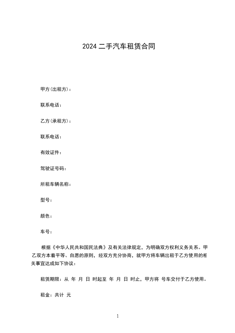 根据《中华人民共和国民法典》及相关法律法规的规定,双方本着平等互利,自愿的原则,就乙方承租甲方之所有闽——车架号为——车辆事宜进行友好协商,明确双方权利义务,达成如下协议:
