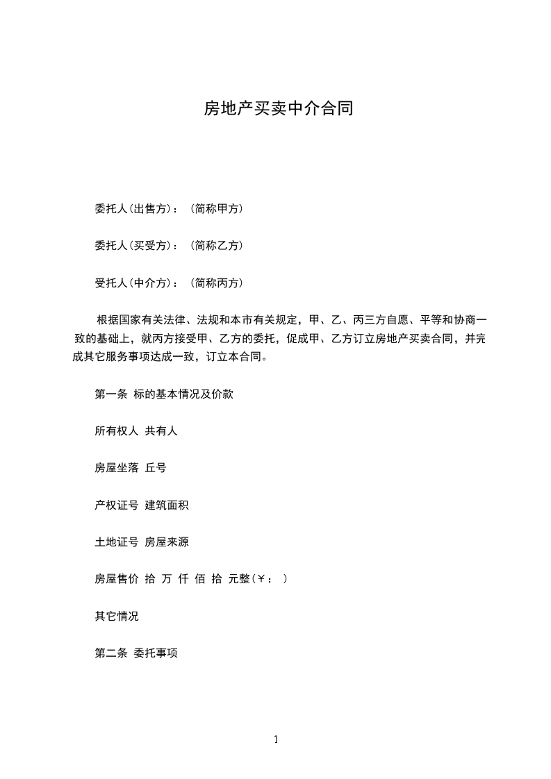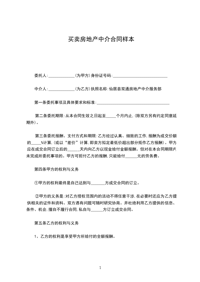 中介人:_____________(为乙方)执照名称:仙居县双通房地产中介服务部