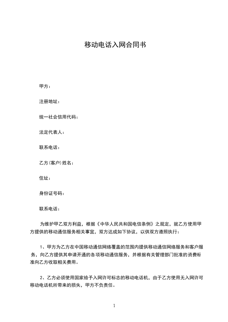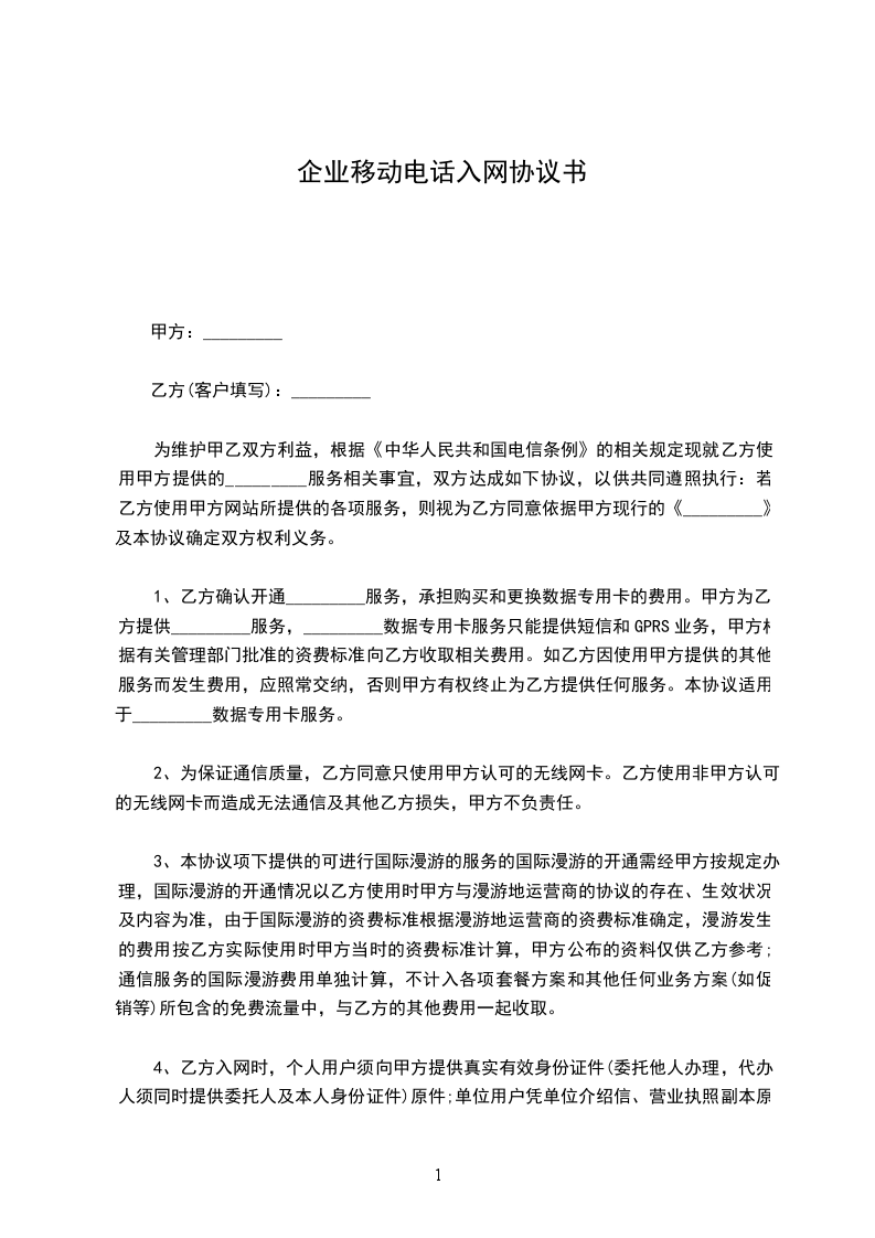 2.入网登记单一式两联,客户与本公司各存一联,请您妥善保管。