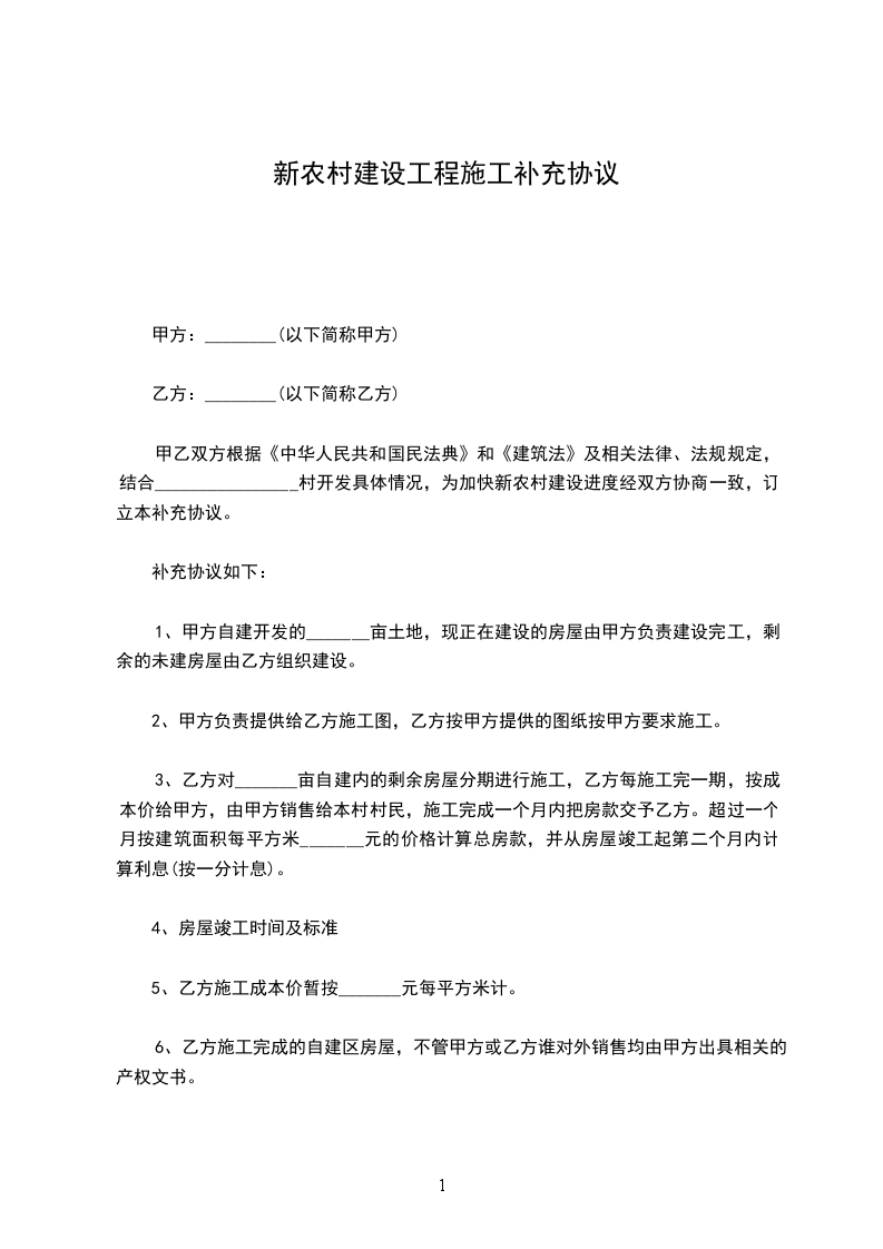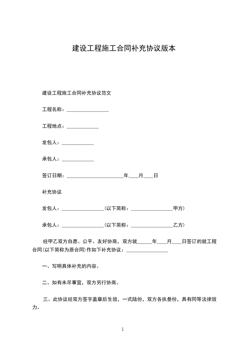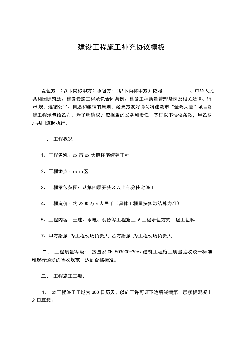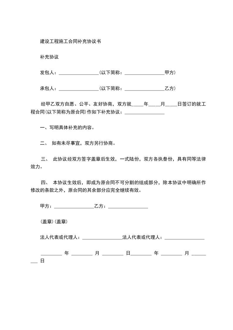 建设工程施工合同补充协议书
