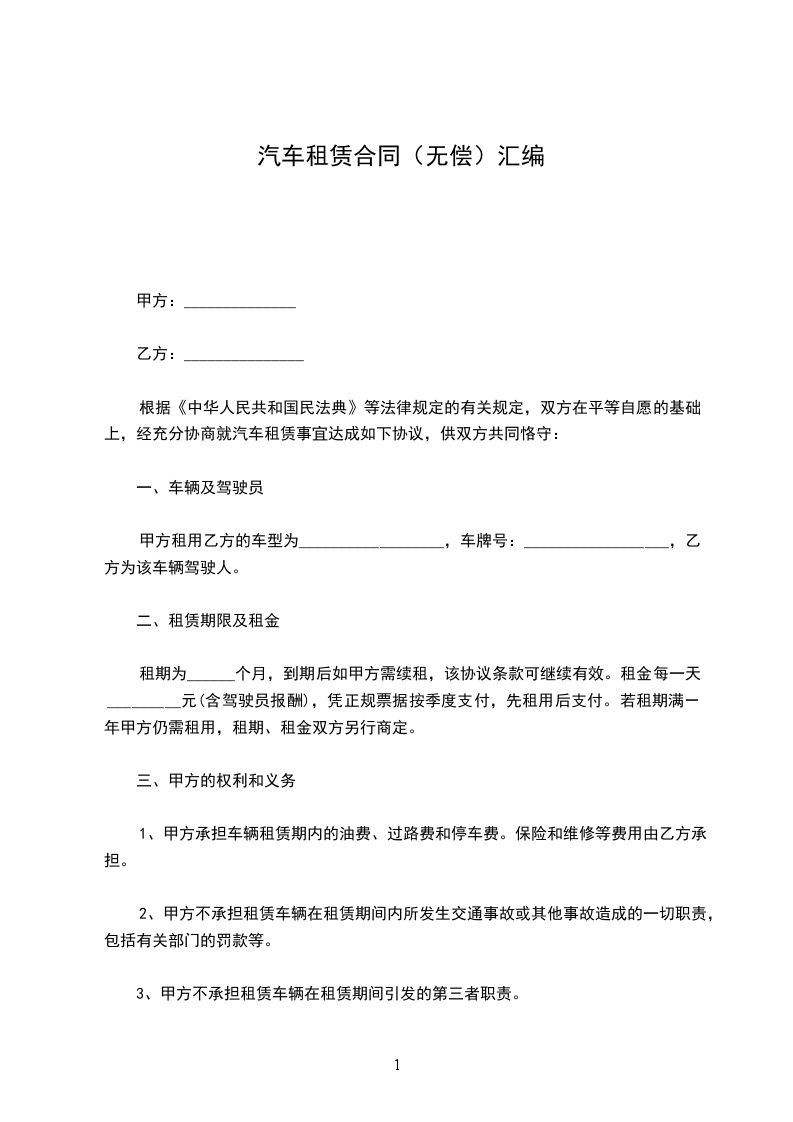 1、甲方为无偿使用该车辆,不支付任何租赁费用;