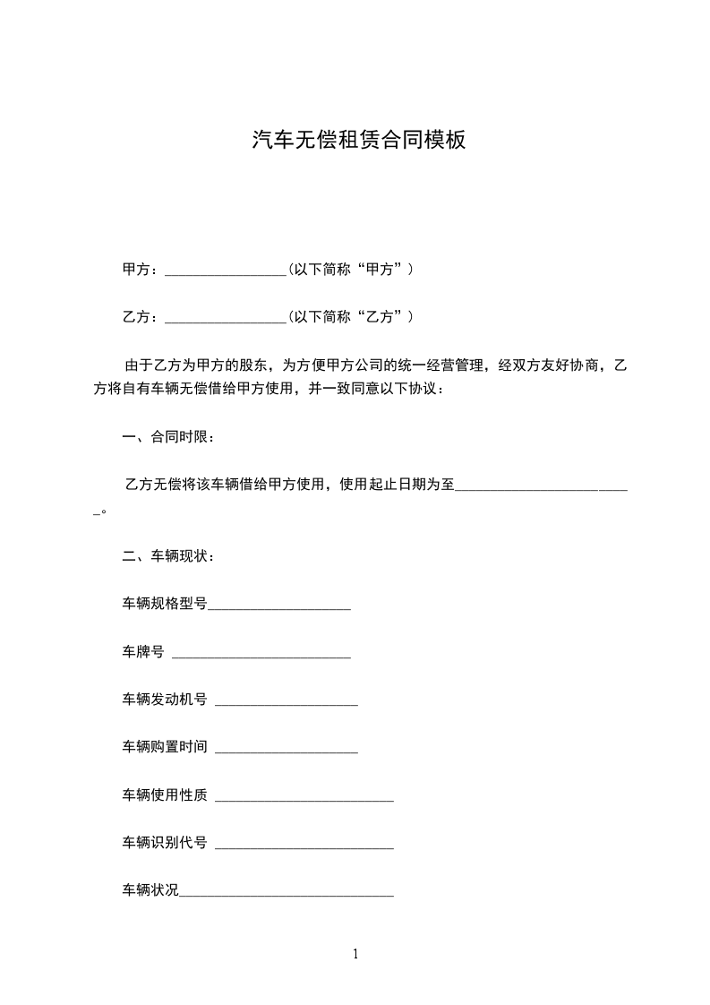 乙方无偿将该车辆借给甲方使用,使用起止日期为至_________________________。