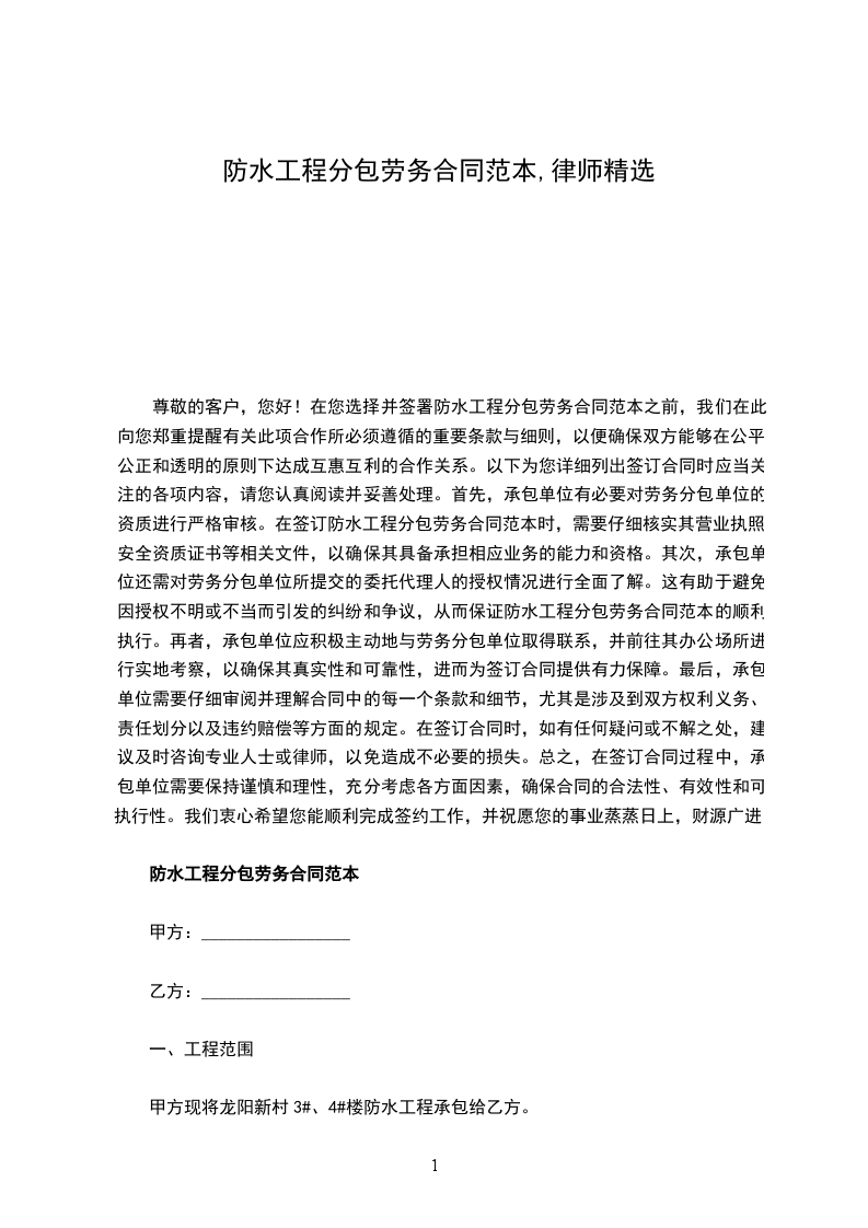 甲方现将龙阳新村3#、4#楼防水工程承包给乙方。