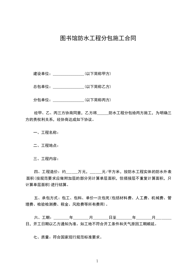 1、结算工程款时,甲方留5%作质保金,质量保证按国家文件精神,保修五年。