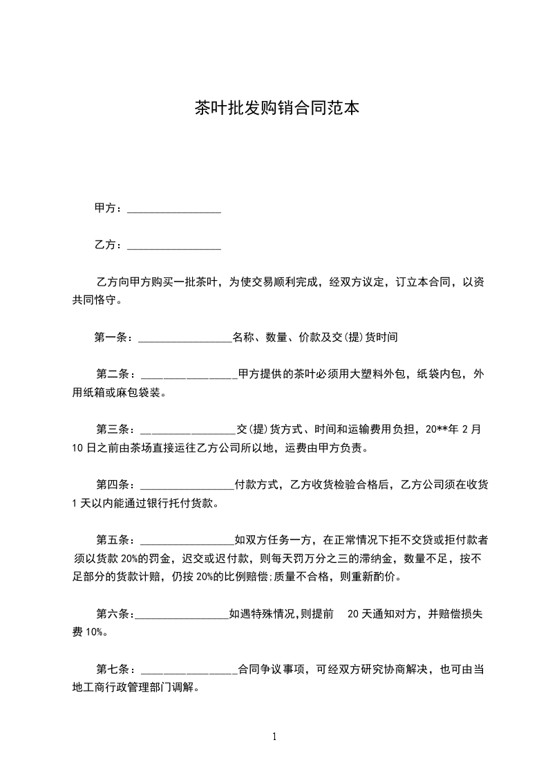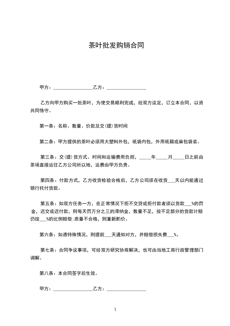 乙方向甲方购买一批茶叶,为使交易顺利完成,经双方议定,订立本合同,以资共同恪守。