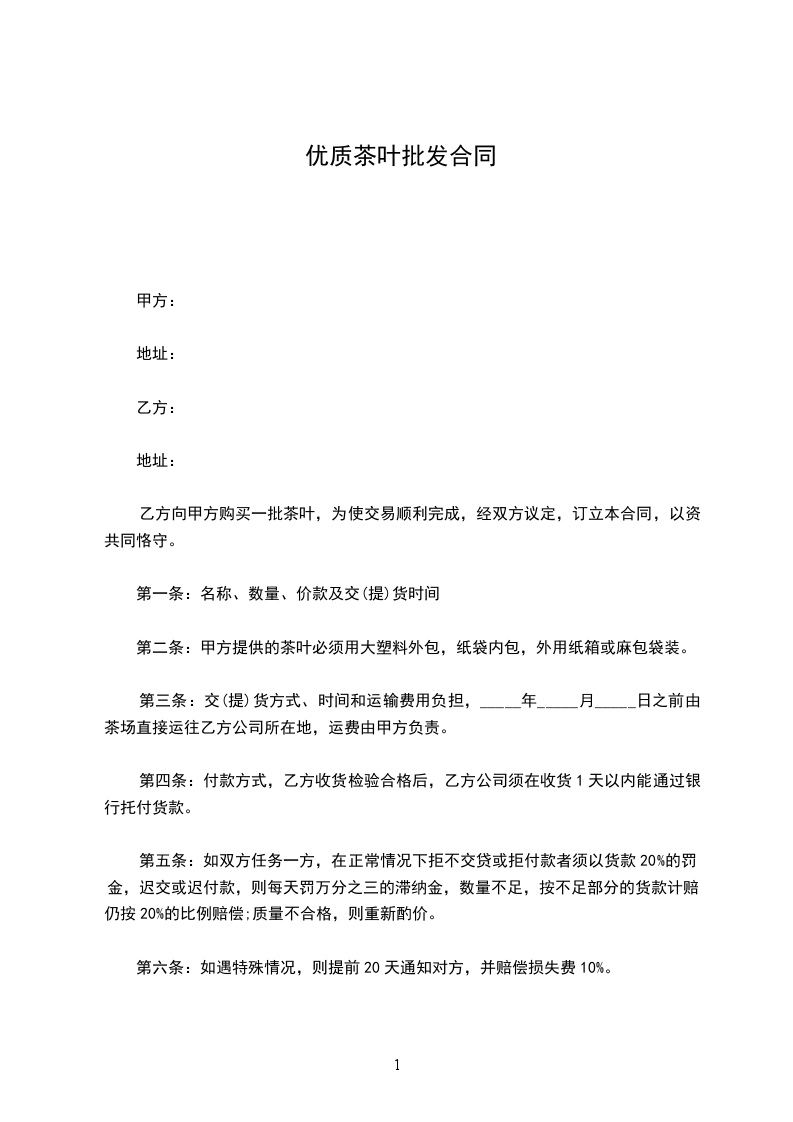 第二条:_________________甲方提供的茶叶必须用大塑料外包,纸袋内包,外用纸箱或麻包袋装。