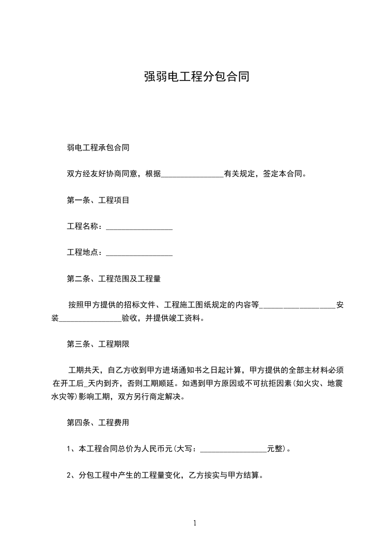 1、本工程合同总价为人民币_____元(大写:_________________元整)。