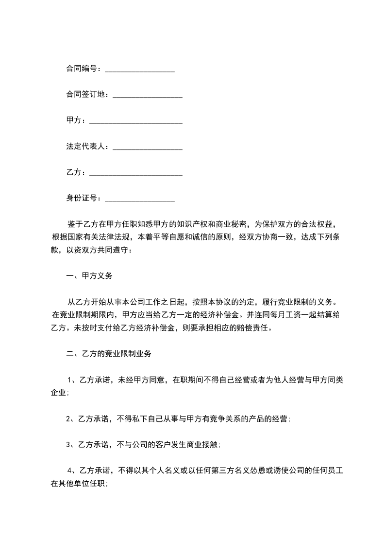 鉴于乙方在甲方任职知悉甲方的知识产权和商业秘密,为保护双方的合法权益,根据国家有关法律法规,本着平等自愿和诚信的原则,经双方协商一致,达成下列条款,以资双方共同遵守: