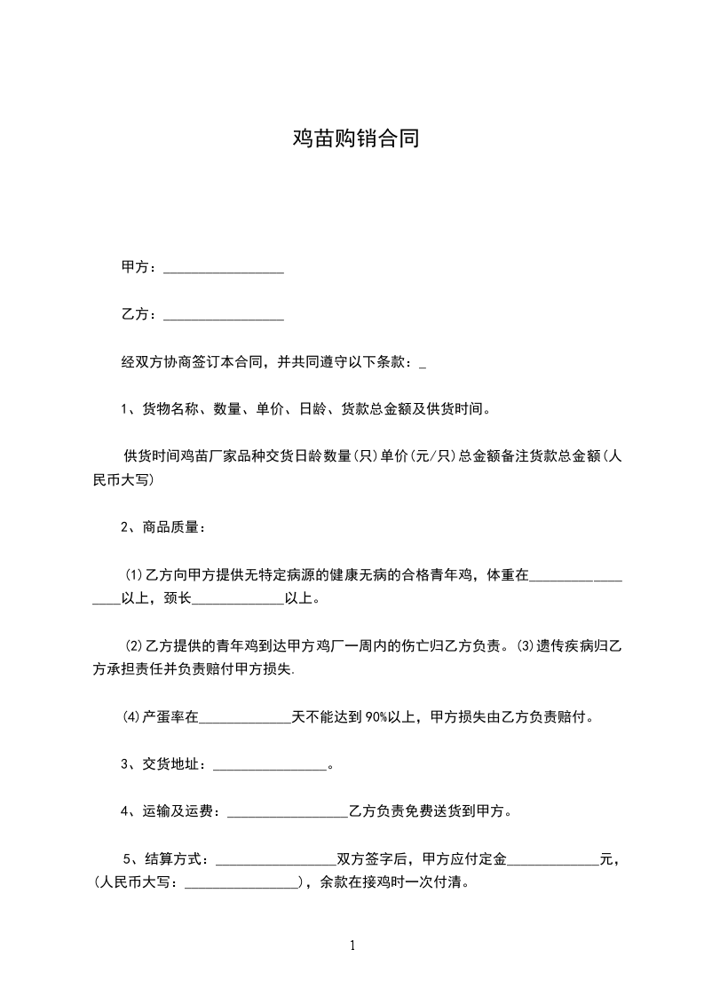 (2)乙方提供的青年鸡到达甲方鸡厂一周内的伤亡归乙方负责。(3)遗传疾病归乙方承担责任并负责赔付甲方损失.