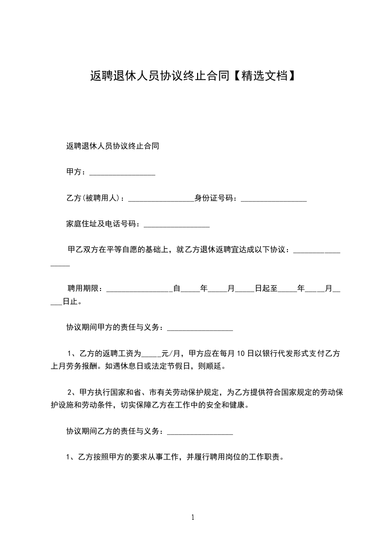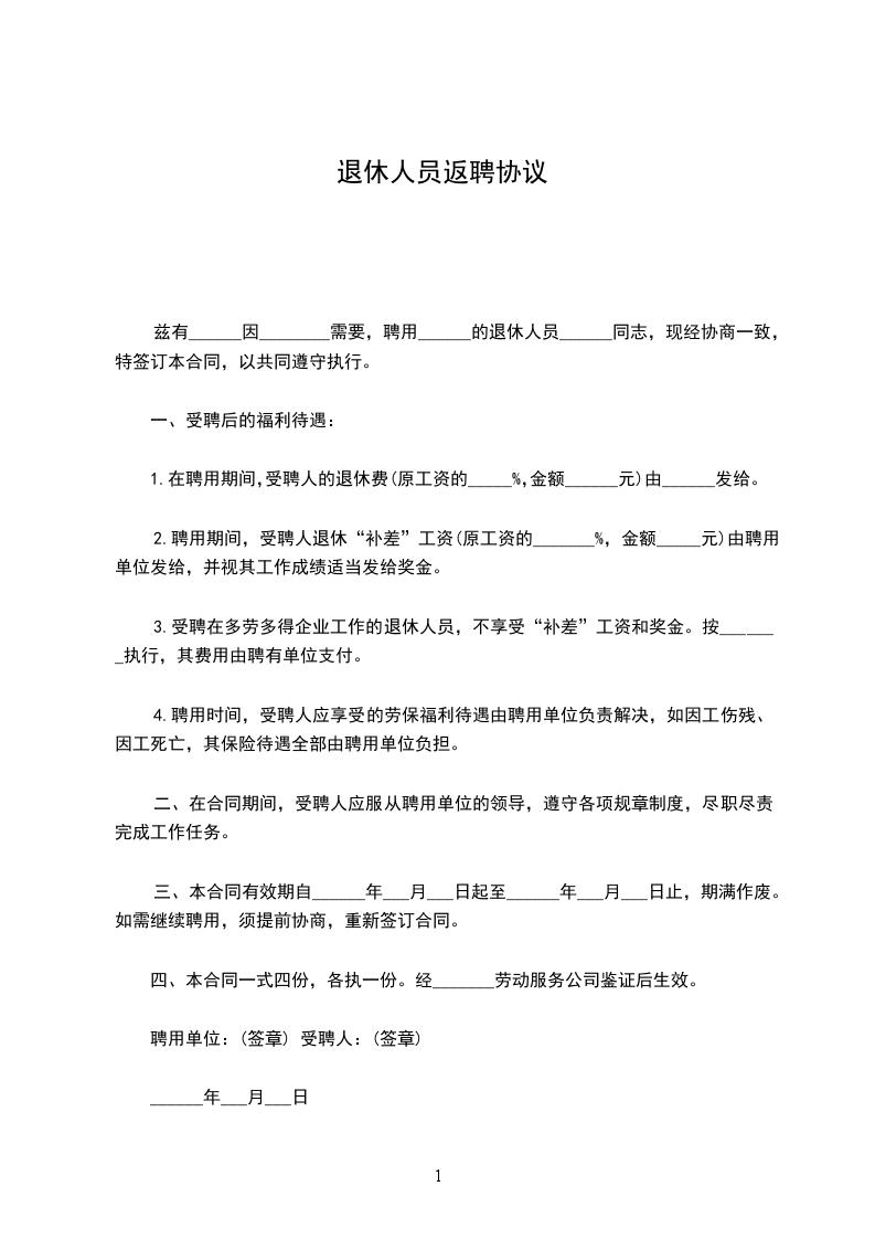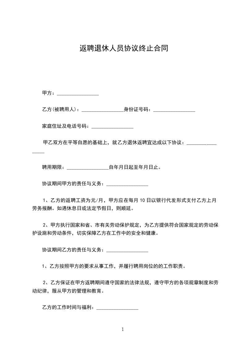 甲乙双方在平等自愿的基础上,就乙方退休返聘宜达成以下协议:_________________