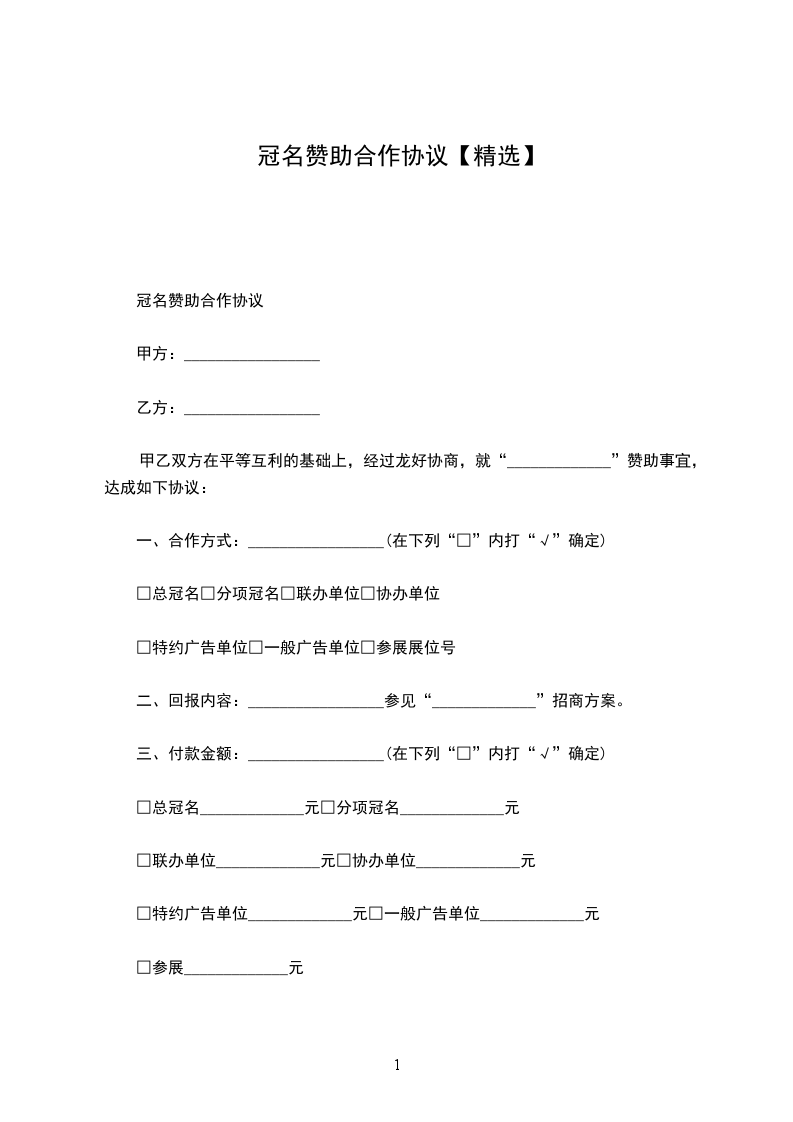 甲乙双方在平等互利的基础上,经过龙好协商,就“_____________”赞助事宜,达成如下协议: