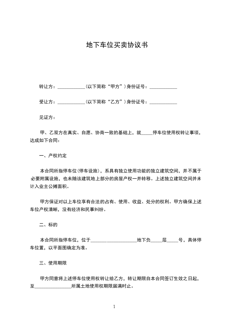 乙方有偿购买甲方出让的__________停车位一个。