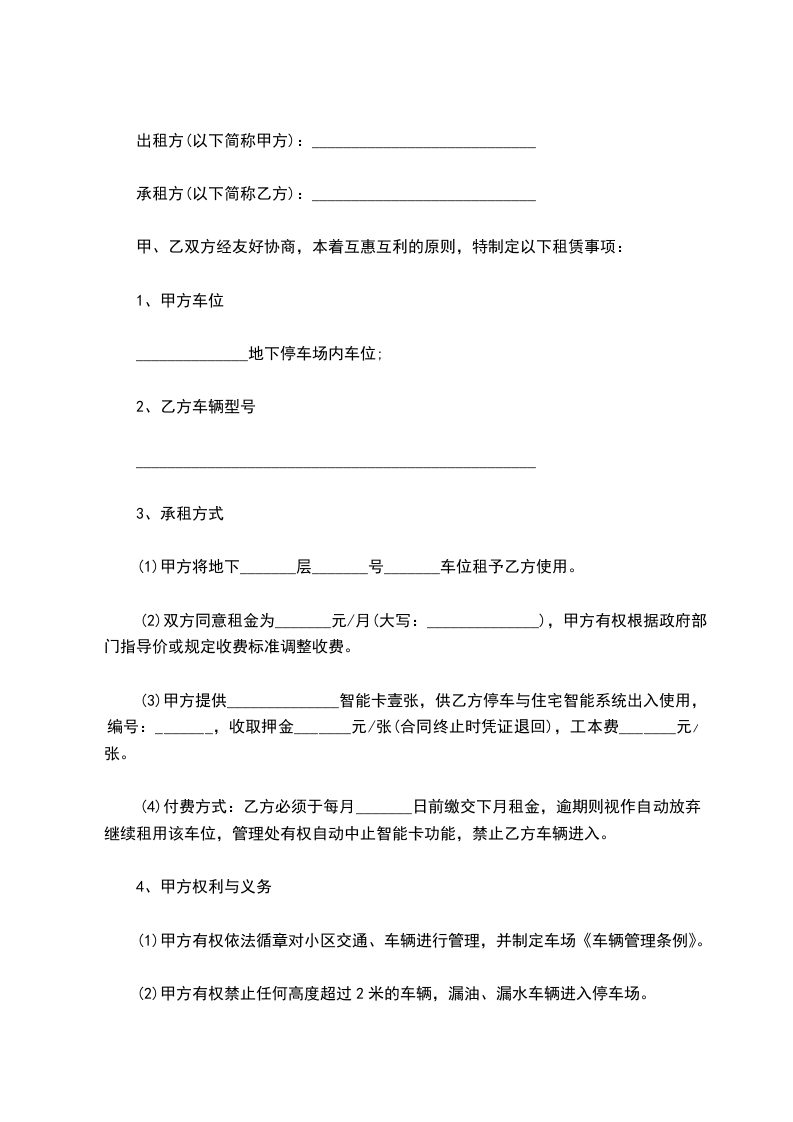 4、乙方使用该停车位,须服从和遵守物业公司的统一管理,并交纳相应的车位物业管理服务费用。