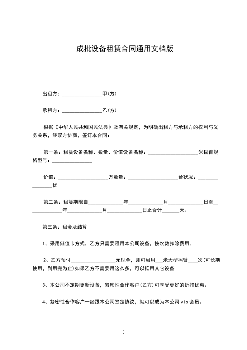 二、租赁期限:_________________为三年即:_________________二00六年十月三十一日至二00九年十月三十日止,如乙方因业务需要延长租赁期限,应在合同期满前一个月主动向甲方提出要求,经甲方同意,重签租赁合同,如甲方不同意,乙方应在合同期满之日无条件归还设备。