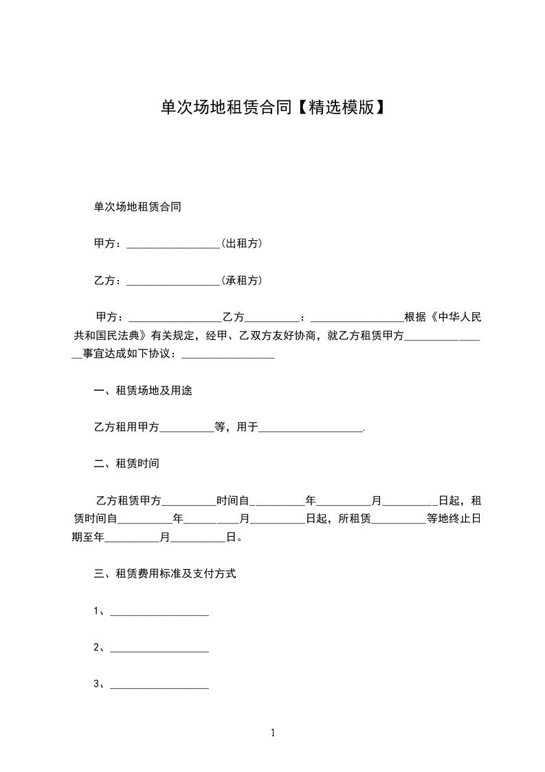 甲方:_________________乙方__________:_________________根据《中华人民共和国民法典》有关规定,经甲、乙双方友好协商,就乙方租凭甲方________________事宜达成如下协议:_________________