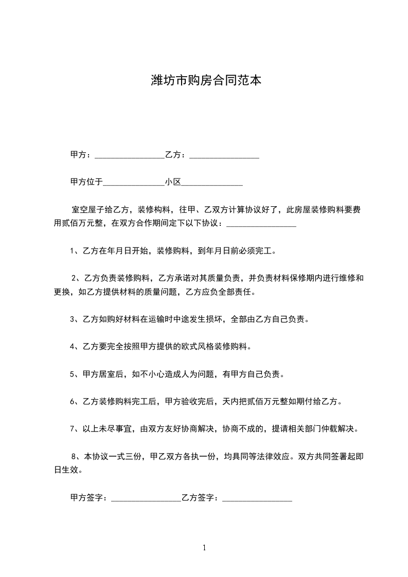 室空屋子给乙方,装修构料,往甲、乙双方计算协议好了,此房屋装修购料要费用贰佰万元整,在双方合作期间定下以下协议:_________________