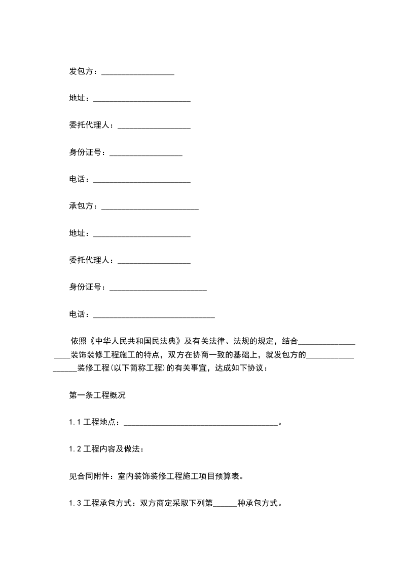 四、承包方式:_________________乙方包工、包辅助施工材料,甲方提供主材(见甲方提供材料明细表)。