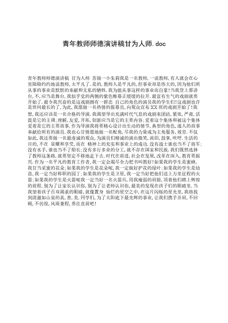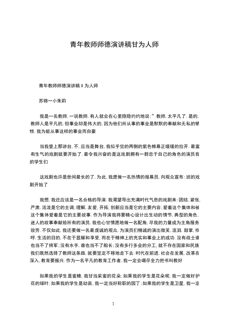 青年教师师德演讲稿X为人师