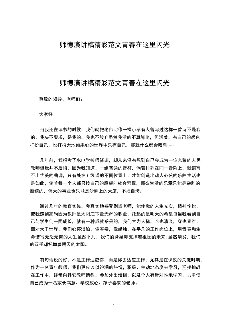 我想,我还应该是一名合格的导演.我渴望导出充满时代气息的戏剧来:团结,紧张,严肃,活泼是它的主调;理解,友爱,开拓,创新应当是它的主要内容;爱着这个集体和被这个集体爱着是它的主要故事.作为导演我将要精心设计出生动的情节,典型的角色,迷人的故事奉献给所有的演员.我也心甘情愿地做一名配角,尽我的力量成为主角服务,效劳.不仅如此,我还要做一名最虔诚的观众,为演员们精诚的演出微笑,流泪,鼓掌,吹呼.生活的目的,不在于显耀和享受,而在于精神上的充实和事业上的成功.没有战士谁也当不了将军;没有水手,谁也当不了船长;没有多行多业的分工,就不存在国家和民族.我们既然选择了教师这条路,就要坚定不移地走下去.时代在前进,社会在发展,改革在深入,教育要振兴.作为一名平凡的教育工作者,我一定会竭尽全力把书叫教好
