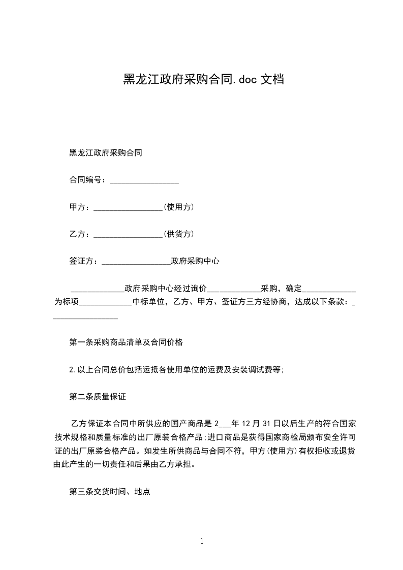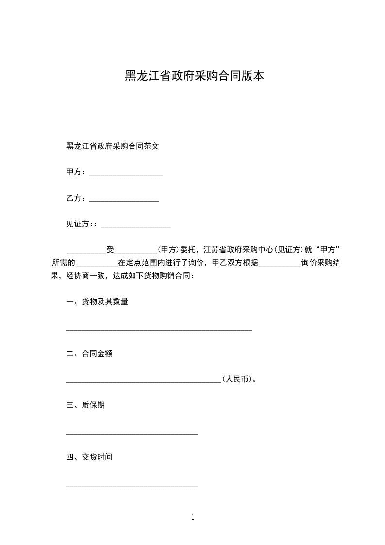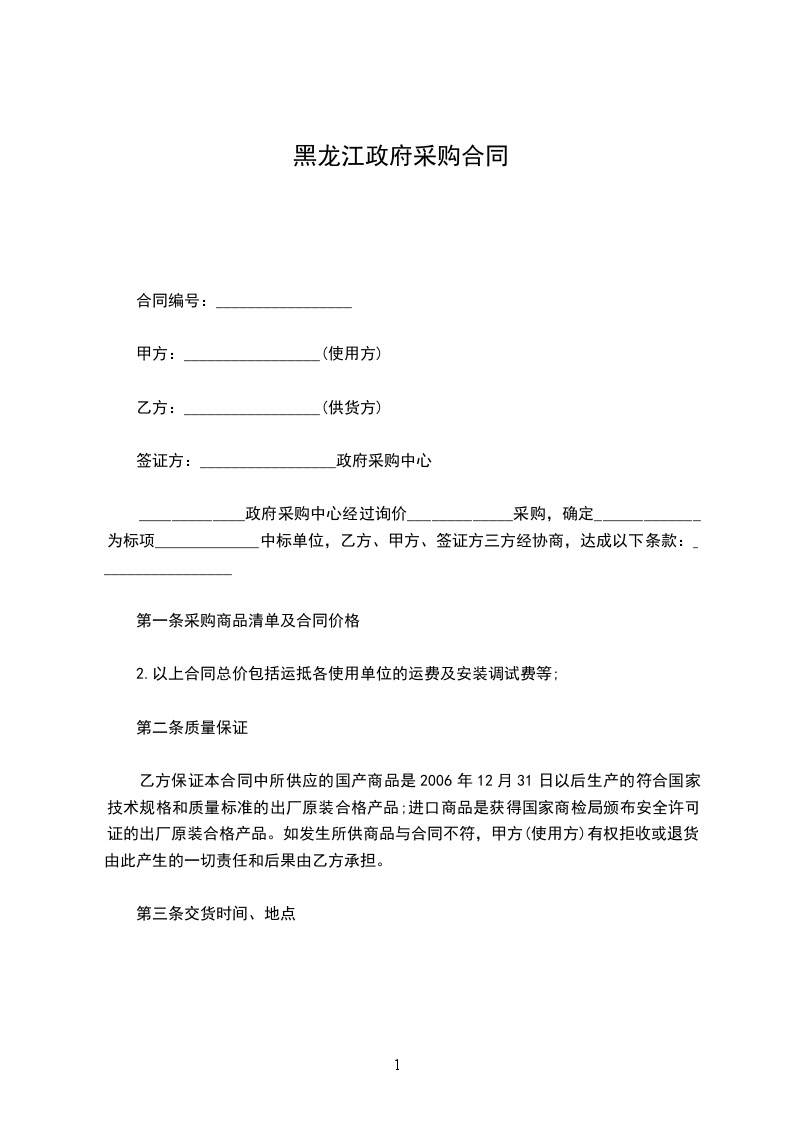 _____________政府采购中心经过询价_____________采购,确定_____________为标项_____________中标单位,乙方、甲方、签证方三方经协商,达成以下条款:_________________