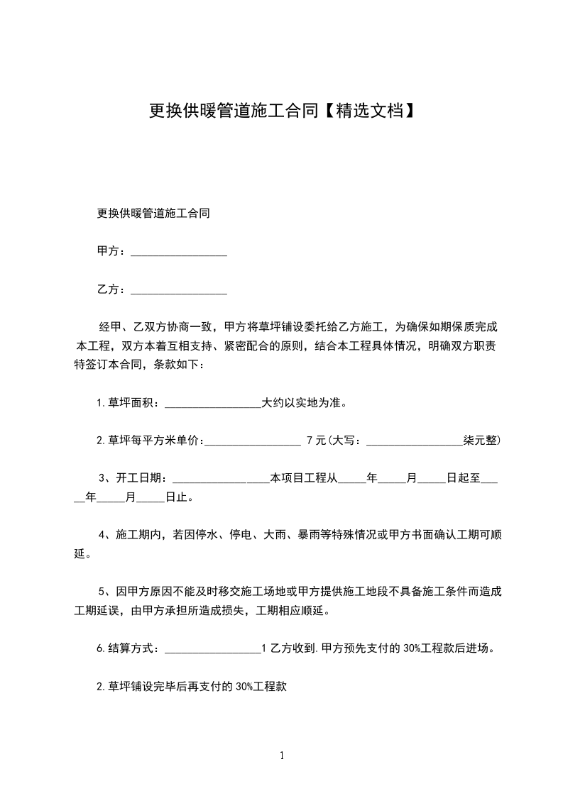 2.草坪铺设完毕后再支付的30%工程款
