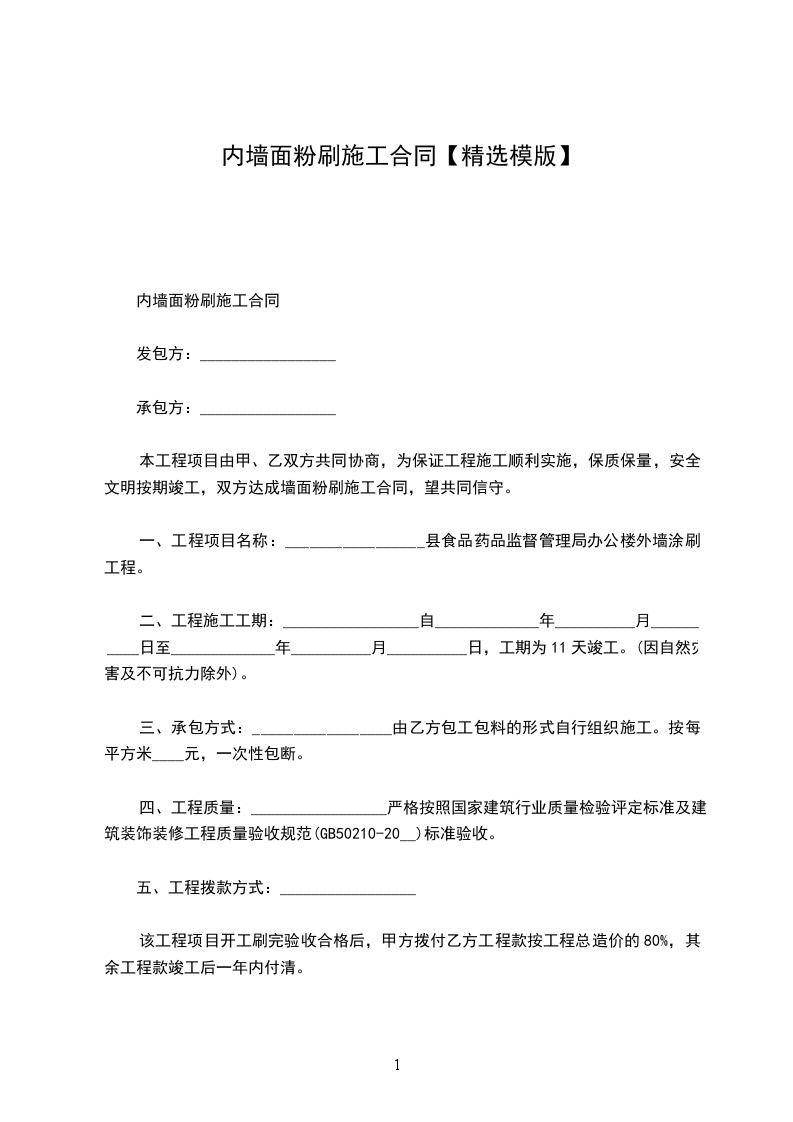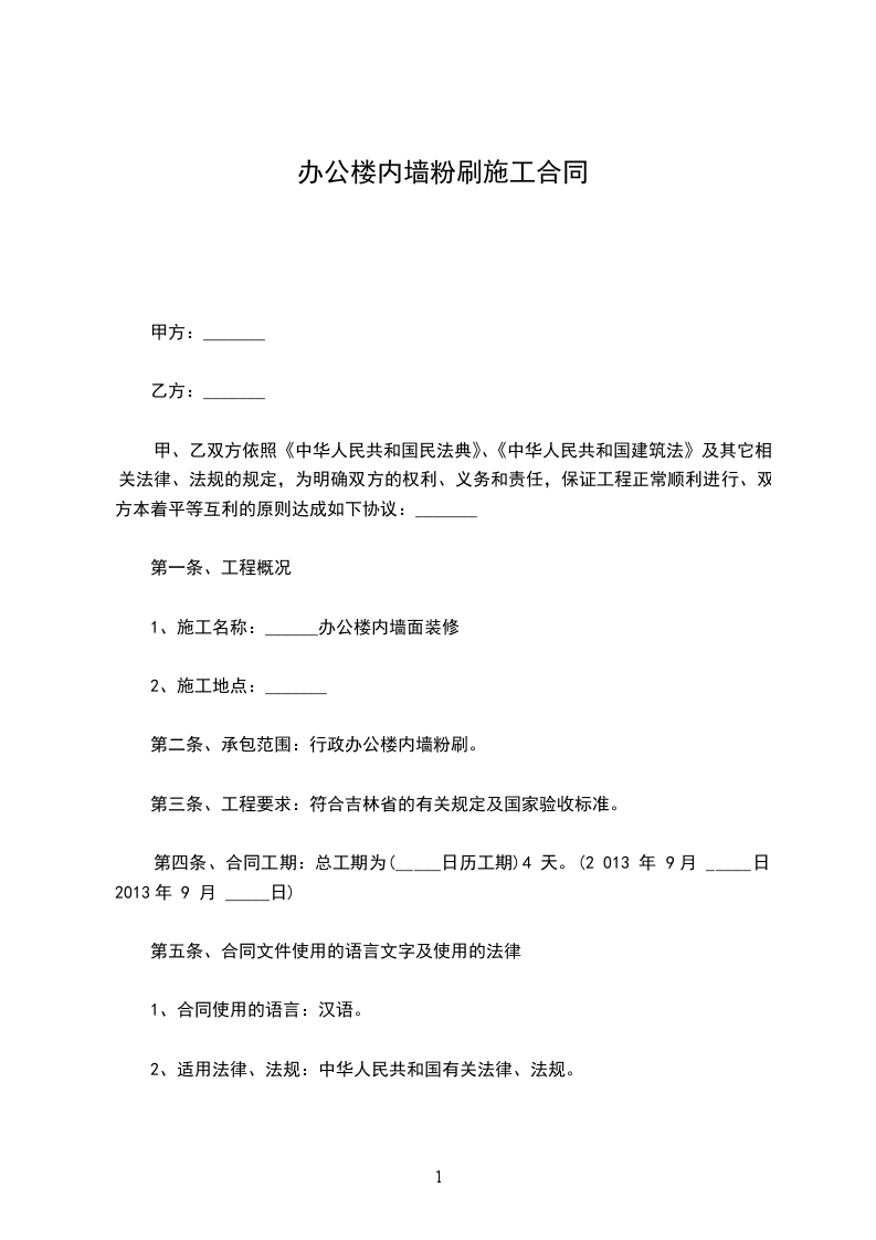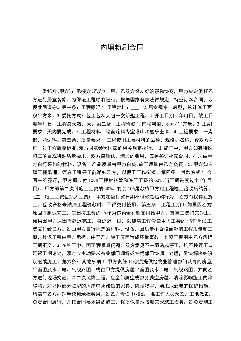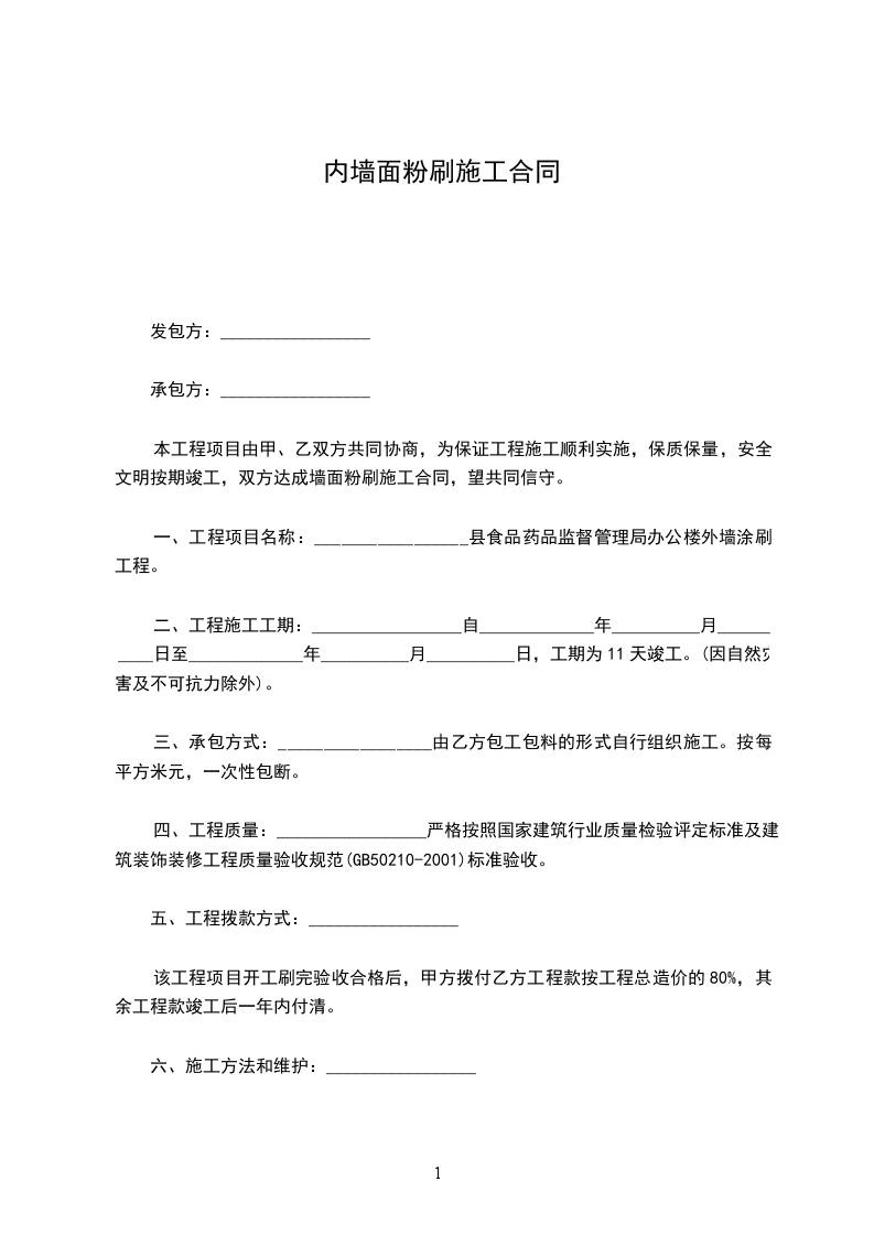 本工程项目由甲、乙双方共同协商,为保证工程施工顺利实施,保质保量,安全文明按期竣工,双方达成墙面粉刷施工合同,望共同信守。