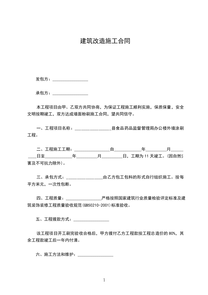 一、工程项目名称:_________________县食品药品监督管理局办公楼外墙涂刷工程。