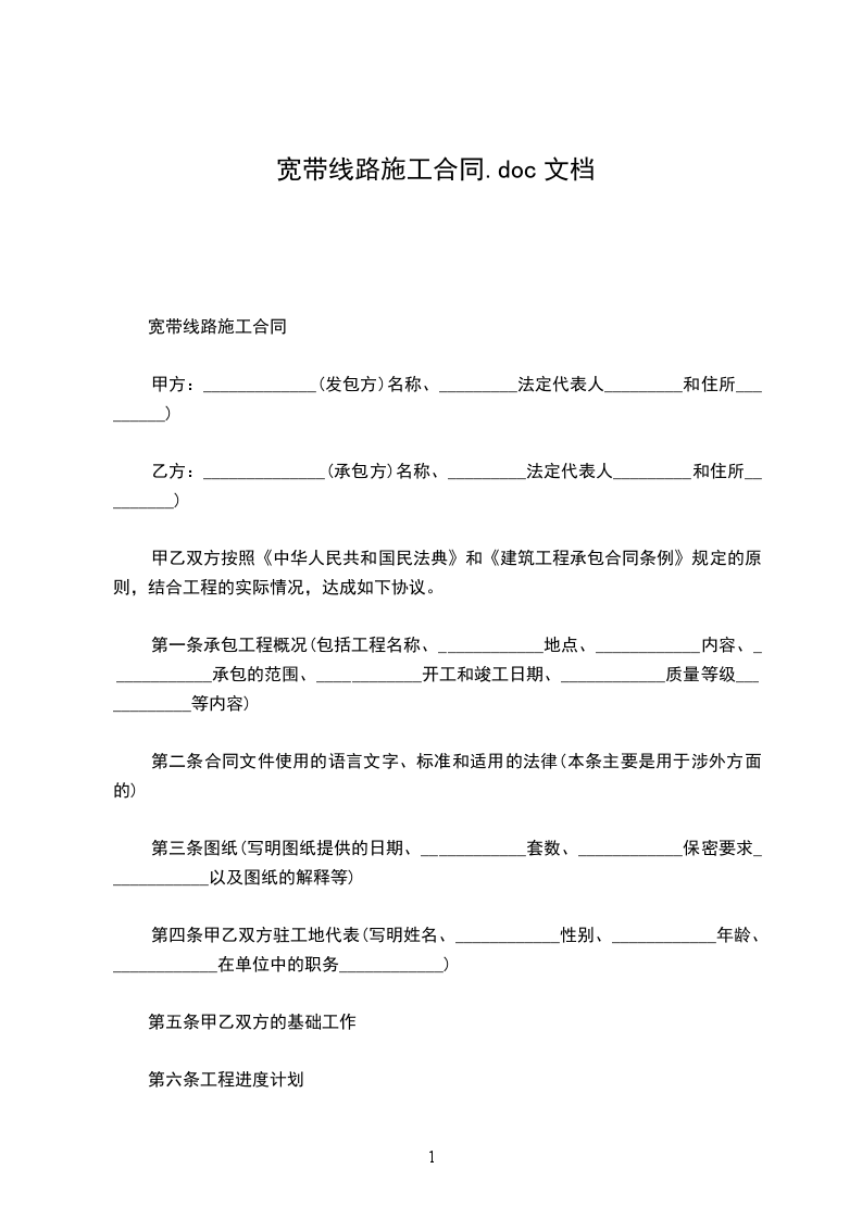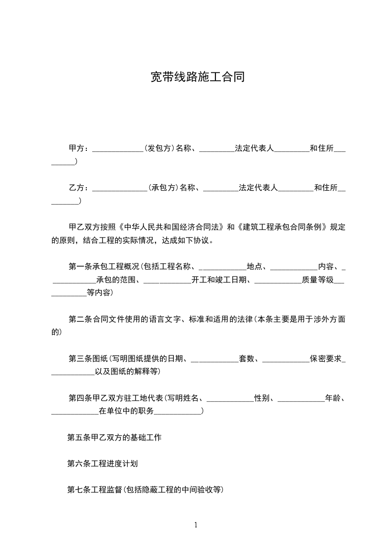第一条承包工程概况(包括工程名称、____________地点、____________内容、____________承包的范围、____________开工和竣工日期、____________质量等级____________等内容)