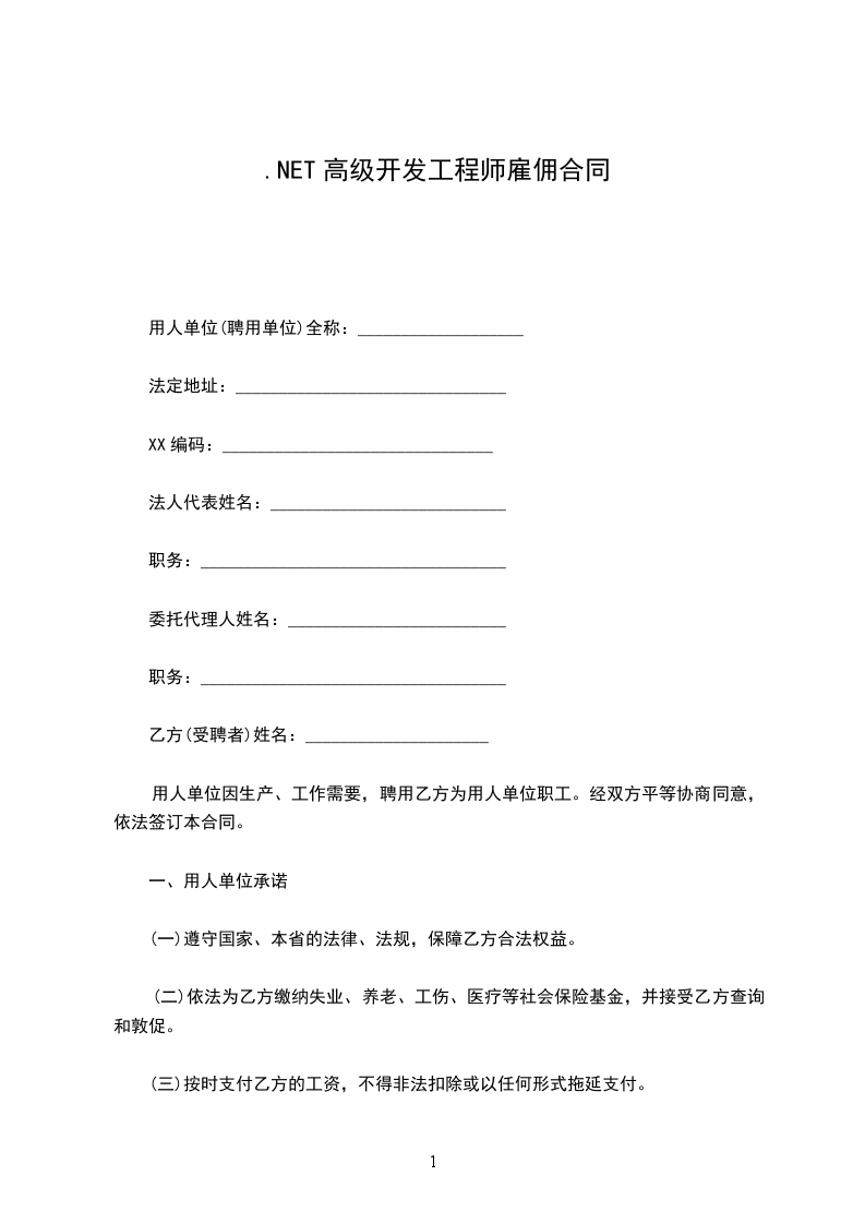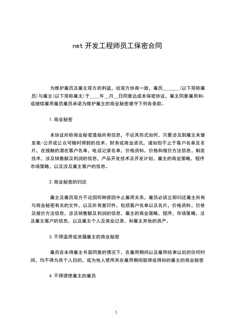 .NET开发工程师竞业限制协议
