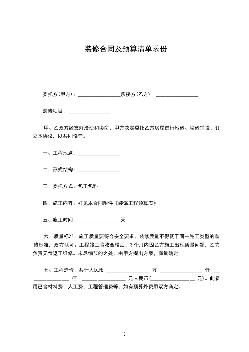 七、工程造价:共计人民币 _________________ 万 _________________ 仟 _________________ 佰 _________________ 元人民币(_________________ 元)。此费用已含材料费、人工费、工程管理费等,如有预算外费用双方商定。