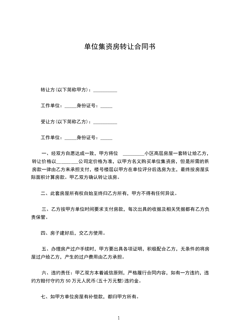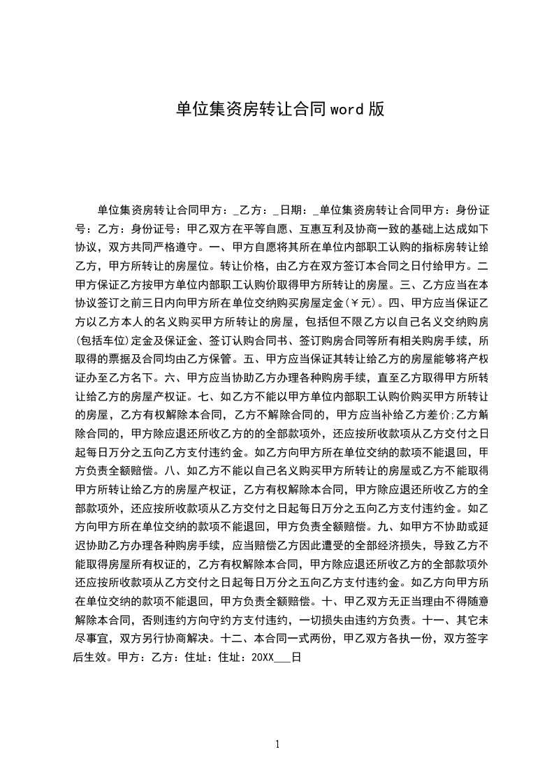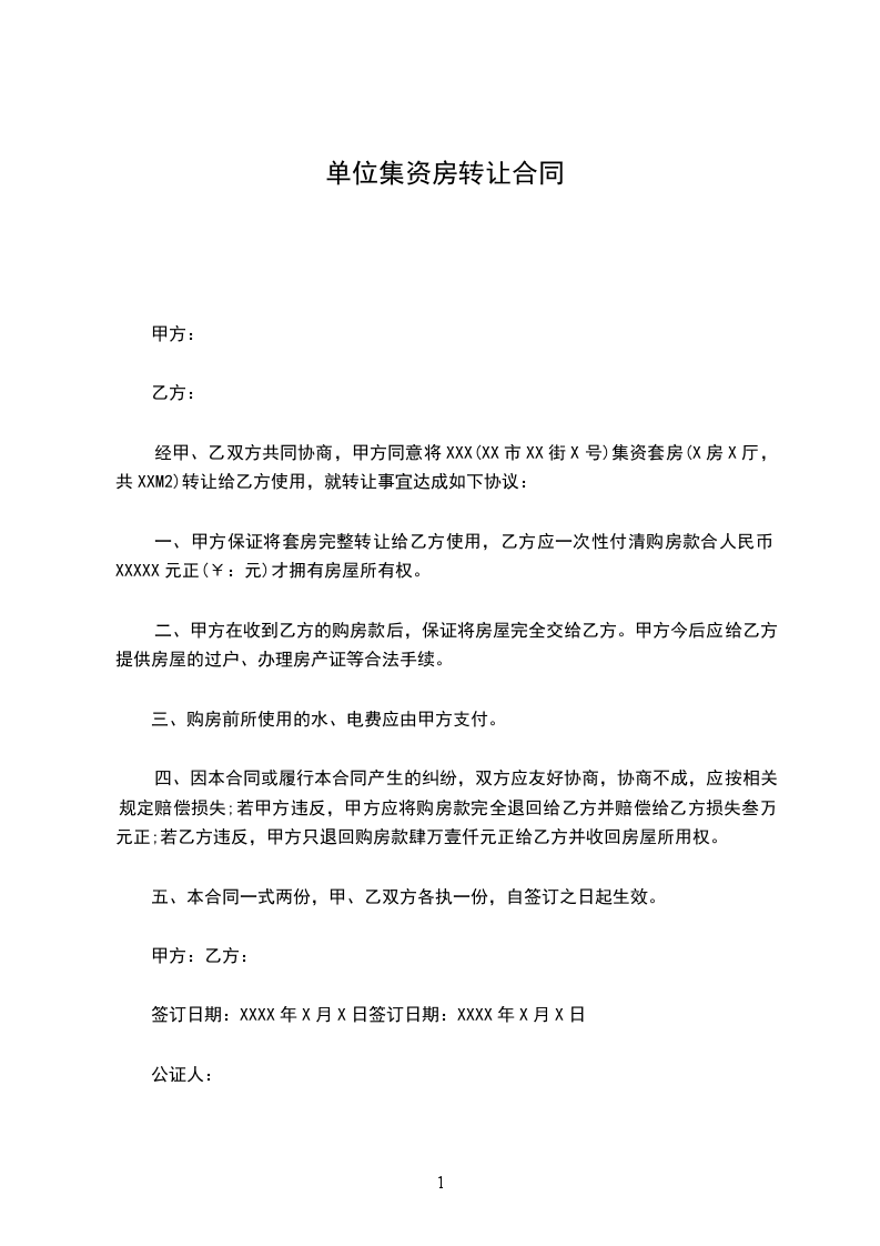 经甲、乙双方共同协商,甲方同意将XXX(XX市XX街X号)集资套房(X房X厅,共XXM2)转让给乙方使用,就转让事宜达成如下协议: