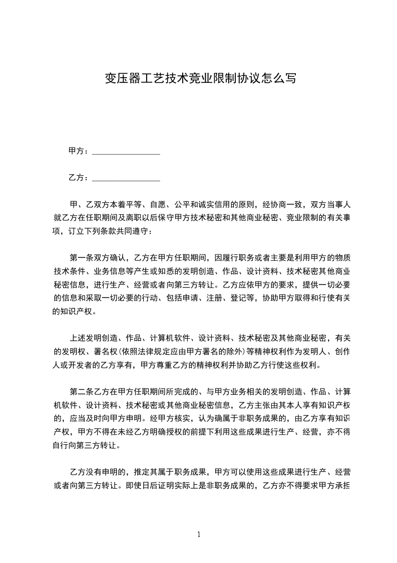 鉴于乙方在甲方任职知悉甲方的知识产权和商业秘密,为保护双方的合法权益,根据国家有关法律法规,本着平等自愿和诚信的原则,经双方协商一致,达成下列条款,以资双方共同遵守: