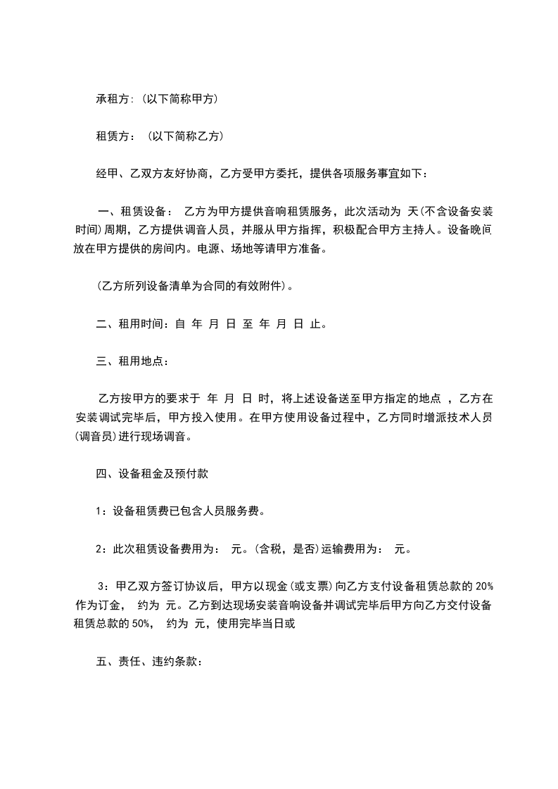 甲方:_________________乙方__________:_________________根据《中华人民共和国民法典》有关规定,经甲、乙双方友好协商,就乙方租凭甲方________________事宜达成如下协议:_________________